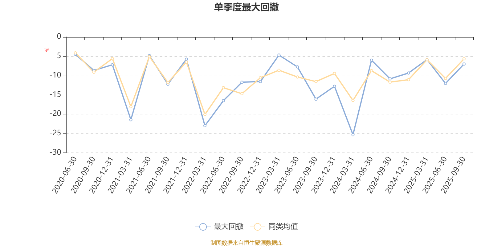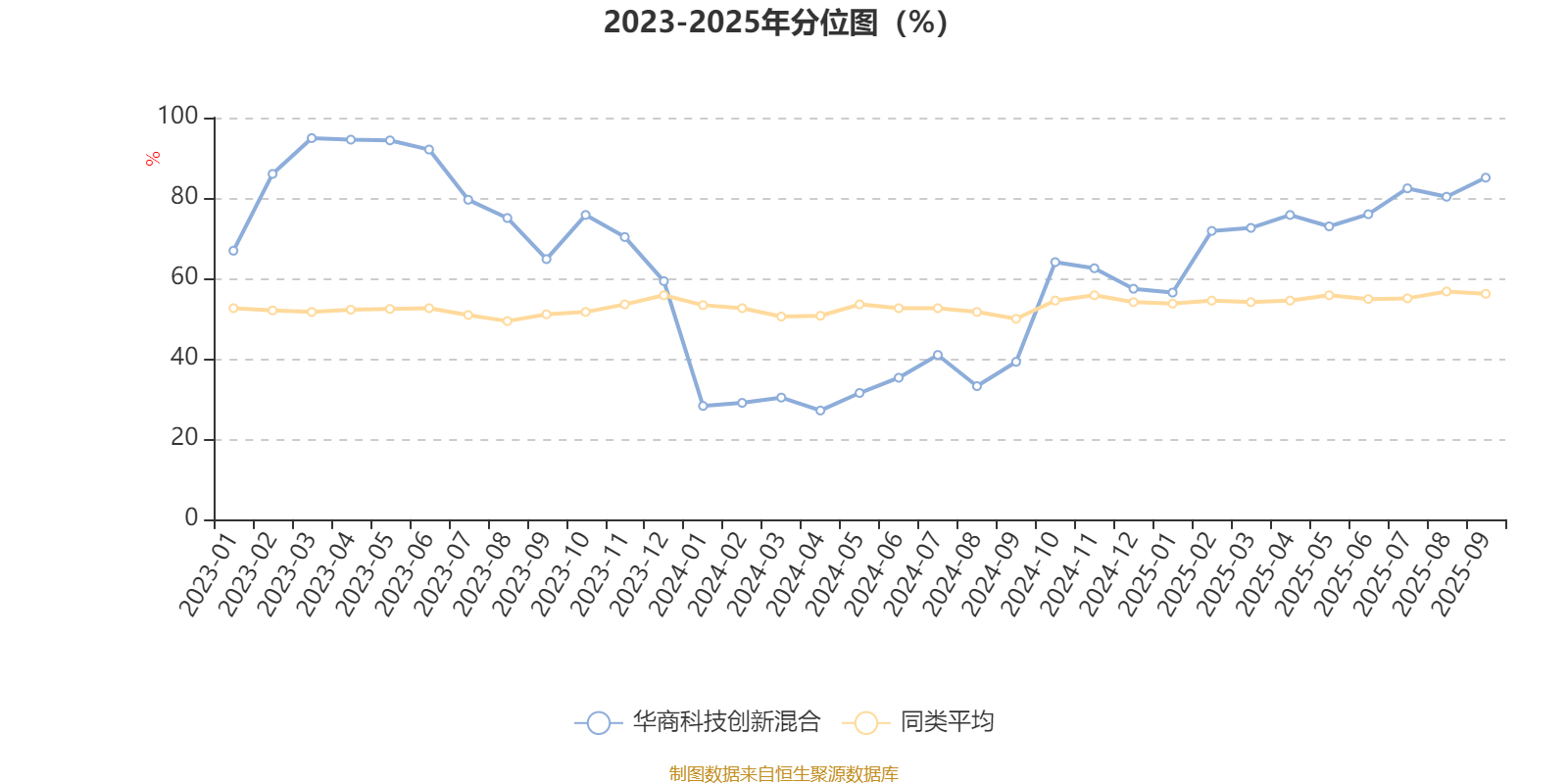 通过所选区间该基金净值增长率分位图,可以观察该基金与同类基金业绩比较情况。图为坐标原点到区间内某时点的净值增长率在同类基金中的分位数。
