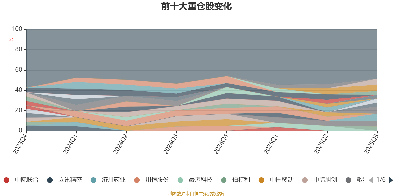 截至2025年三季度末,基金十大重仓股分别是精智达、科达利、兆易创新、新宙邦、敏实集团、伯特利、中兴通讯、良信股份、科博达、德赛西威。