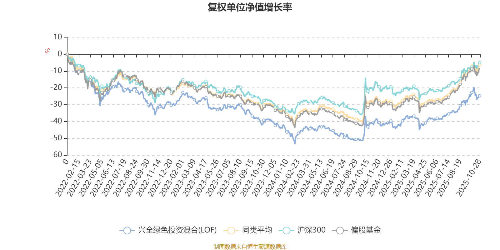 截至10月28日,兴全绿色投资混合(LOF)近三个月复权单位净值增长率为13.39%,位于同类可比基金72/130;近半年复权单位净值增长率为27.88%,位于同类可比基金69/130;近一年复权单位净值增长率为26.87%,位于同类可比基金68/130;近三年复权单位净值增长率为16.47%,位于同类可比基金86/124。