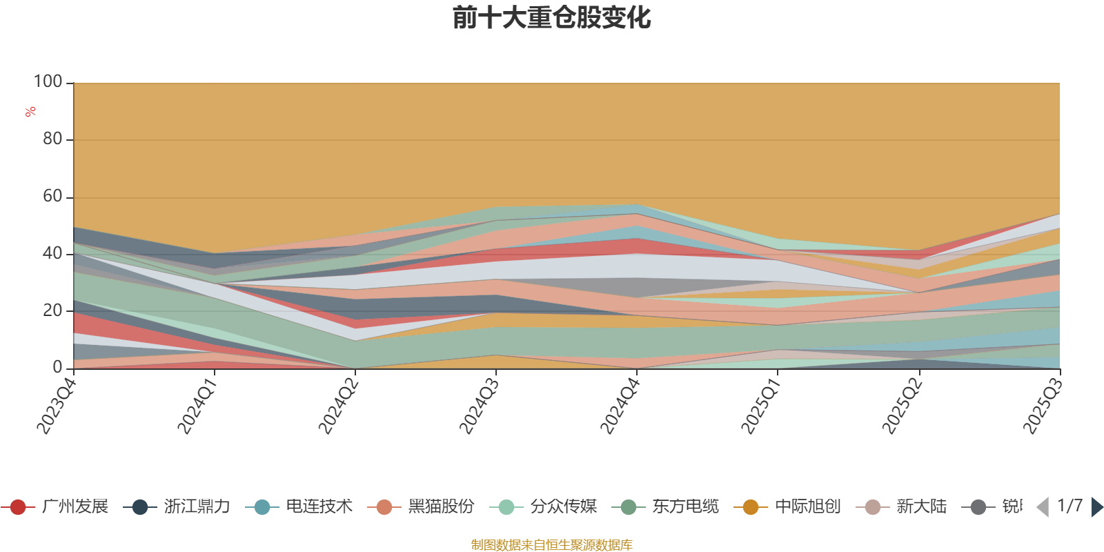 截至2025年三季度末,基金十大重仓股分别是宁德时代、佰维存储、有方科技、继峰股份、中科曙光、金风科技、聚辰股份、润泽科技、东方电缆、电连技术。