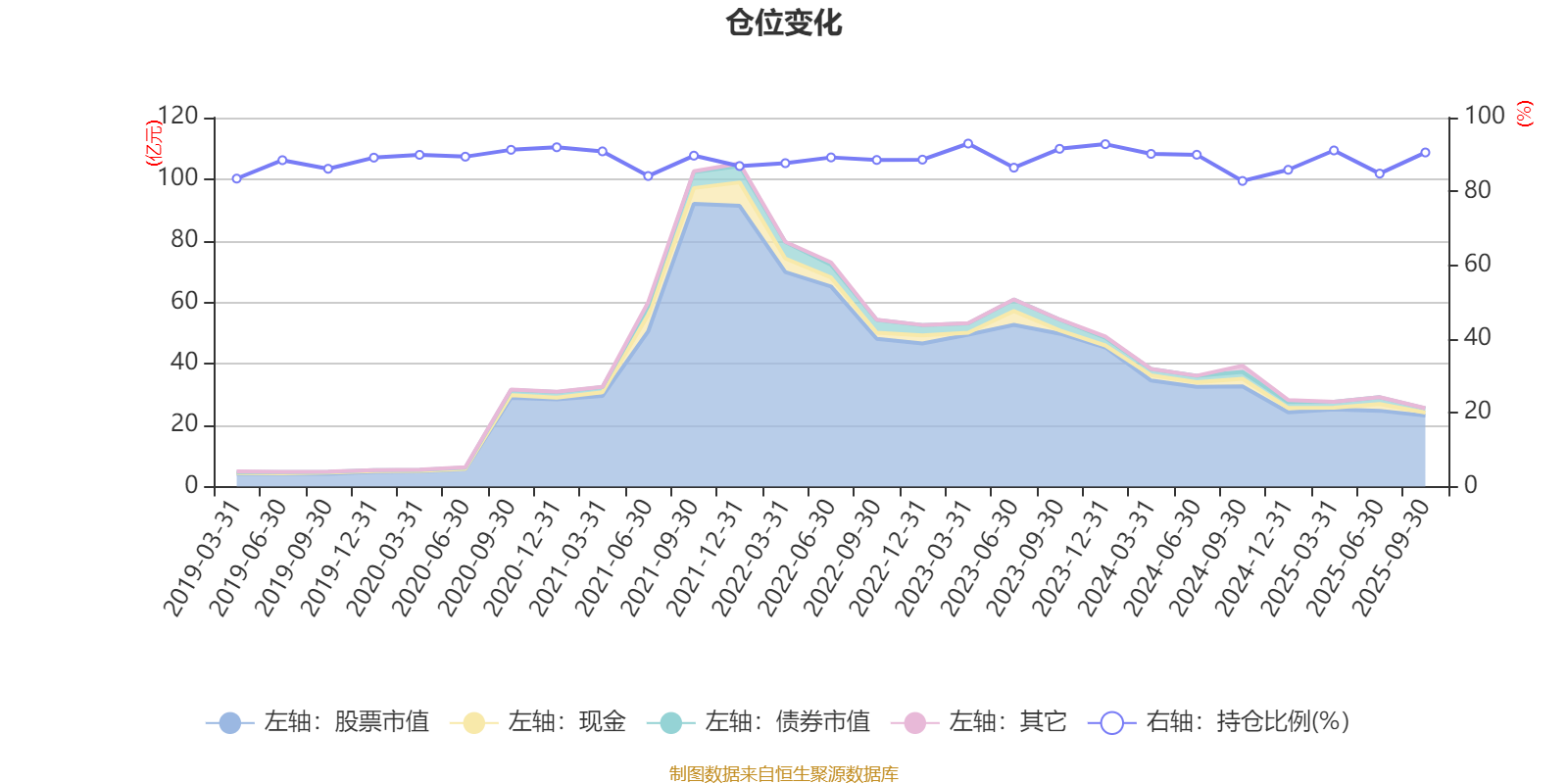 据定期报告数据统计,近三年平均股票仓位为88.97%,同类平均为86.15%。2023年一季度末基金达到92.96%的最高仓位,2024年三季度末最低,为82.83%。