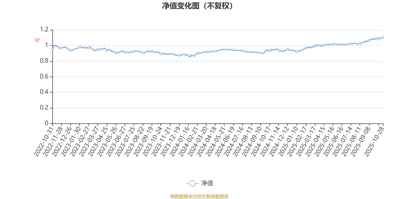通过所选区间该基金净值增长率分位图,可以观察该基金与同类基金业绩比较情况。图为坐标原点到区间内某时点的净值增长率在同类基金中的分位数。