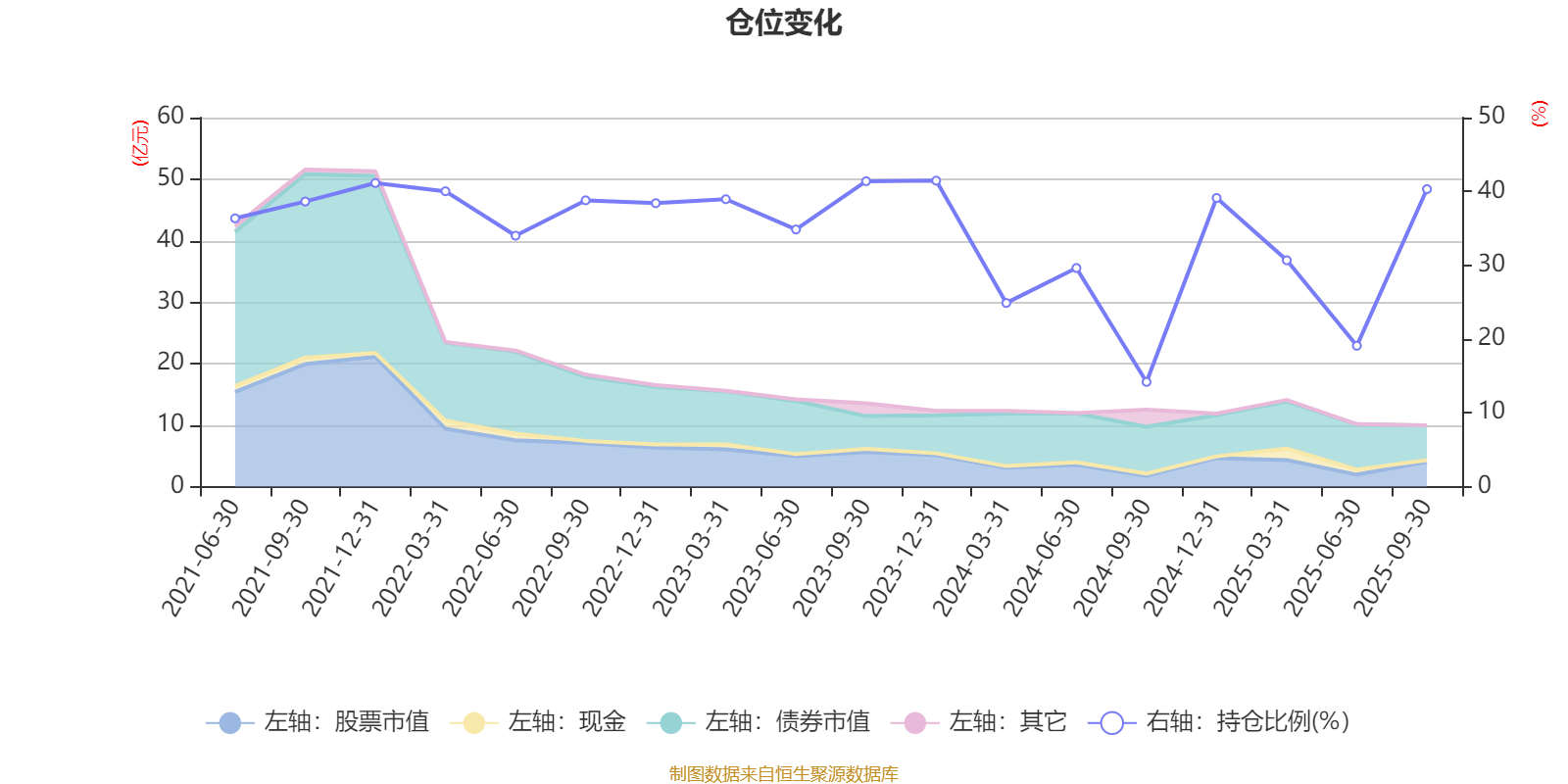 据定期报告数据统计,近三年平均股票仓位为32.74%,同类平均为67.37%。2023年末基金达到41.46%的最高仓位,2024年三季度末最低,为14.18%。