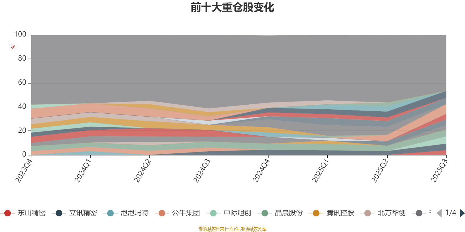 截至2025年三季度末,基金十大重仓股分别是信达生物、中际旭创、巨化股份、晶晨股份、立讯精密、中芯国际、诺诚健华、澜起科技、东山精密、宁德时代。