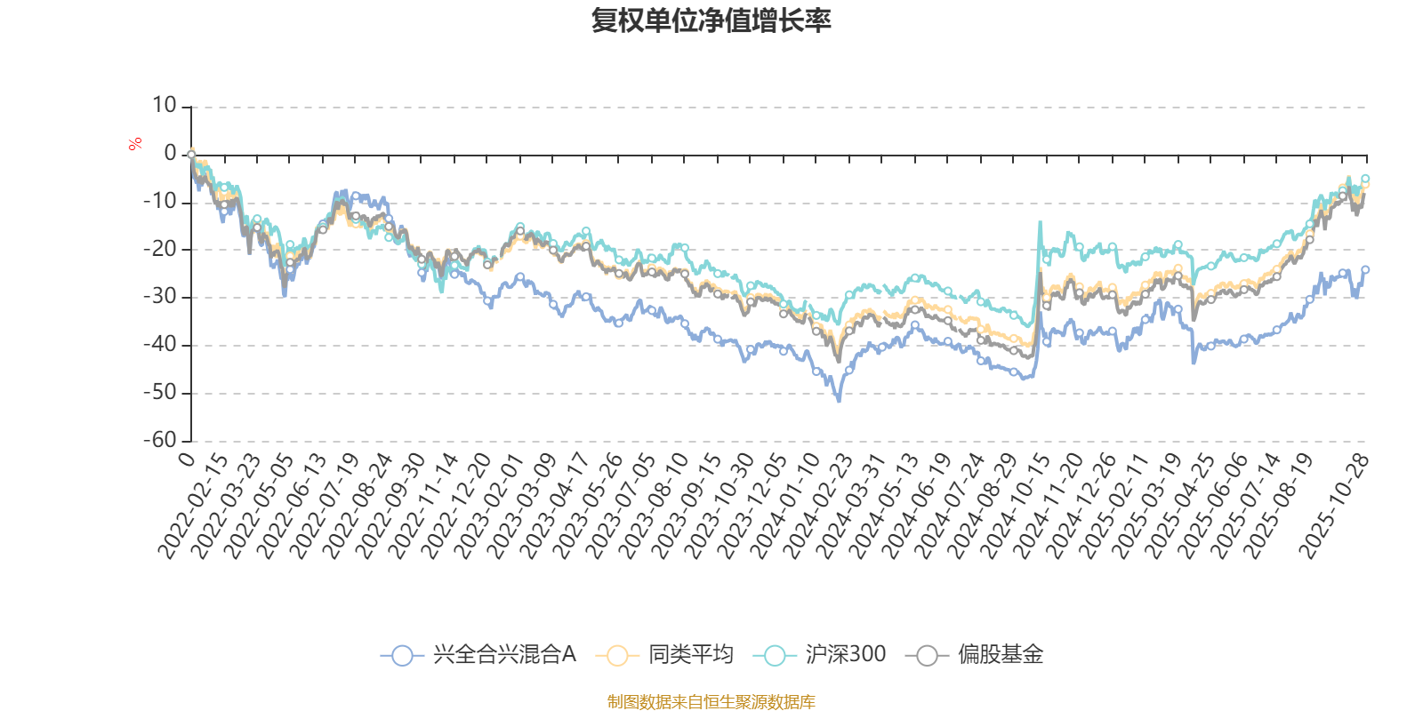 截至10月28日,兴全合兴混合A近三个月复权单位净值增长率为15.60%,位于同类可比基金63/130;近半年复权单位净值增长率为27.25%,位于同类可比基金70/130;近一年复权单位净值增长率为20.39%,位于同类可比基金82/130;近三年复权单位净值增长率为2.26%,位于同类可比基金103/124。