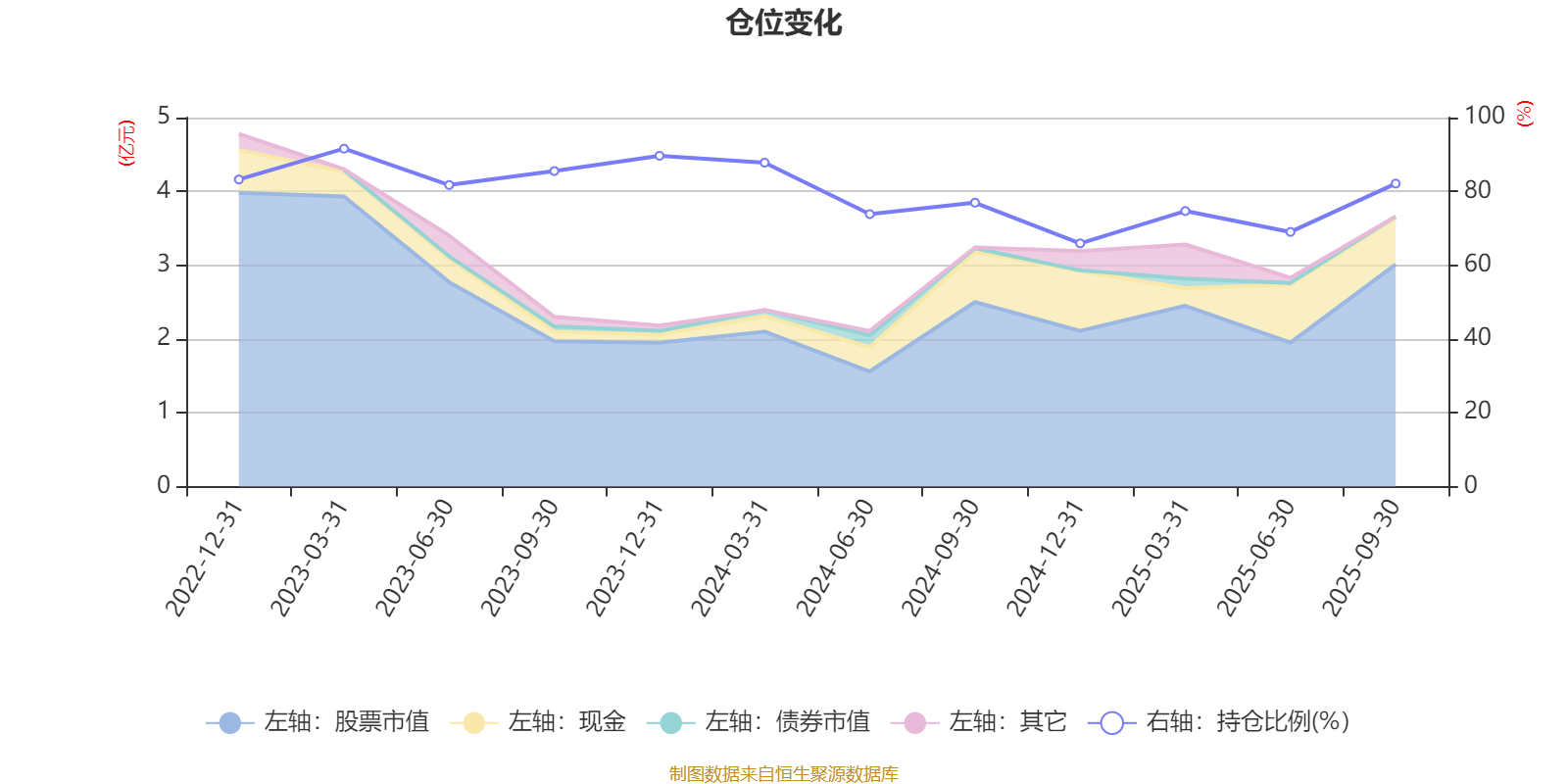 据定期报告数据统计,近三年平均股票仓位为80.17%,同类平均为83.73%。2023年一季度末基金达到91.58%的最高仓位,2024年末最低,为65.91%。