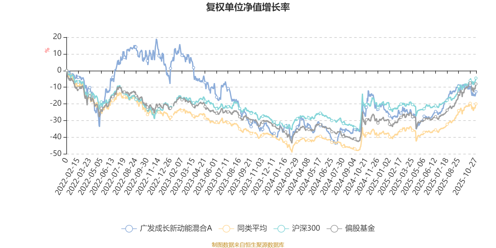 截至10月27日,广发成长新动能混合A近三个月复权单位净值增长率为1.50%,位于同类可比基金644/689;近半年复权单位净值增长率为23.97%,位于同类可比基金404/688;近一年复权单位净值增长率为-0.83%,位于同类可比基金638/653;近三年复权单位净值增长率为-21.52%,位于同类可比基金340/364。