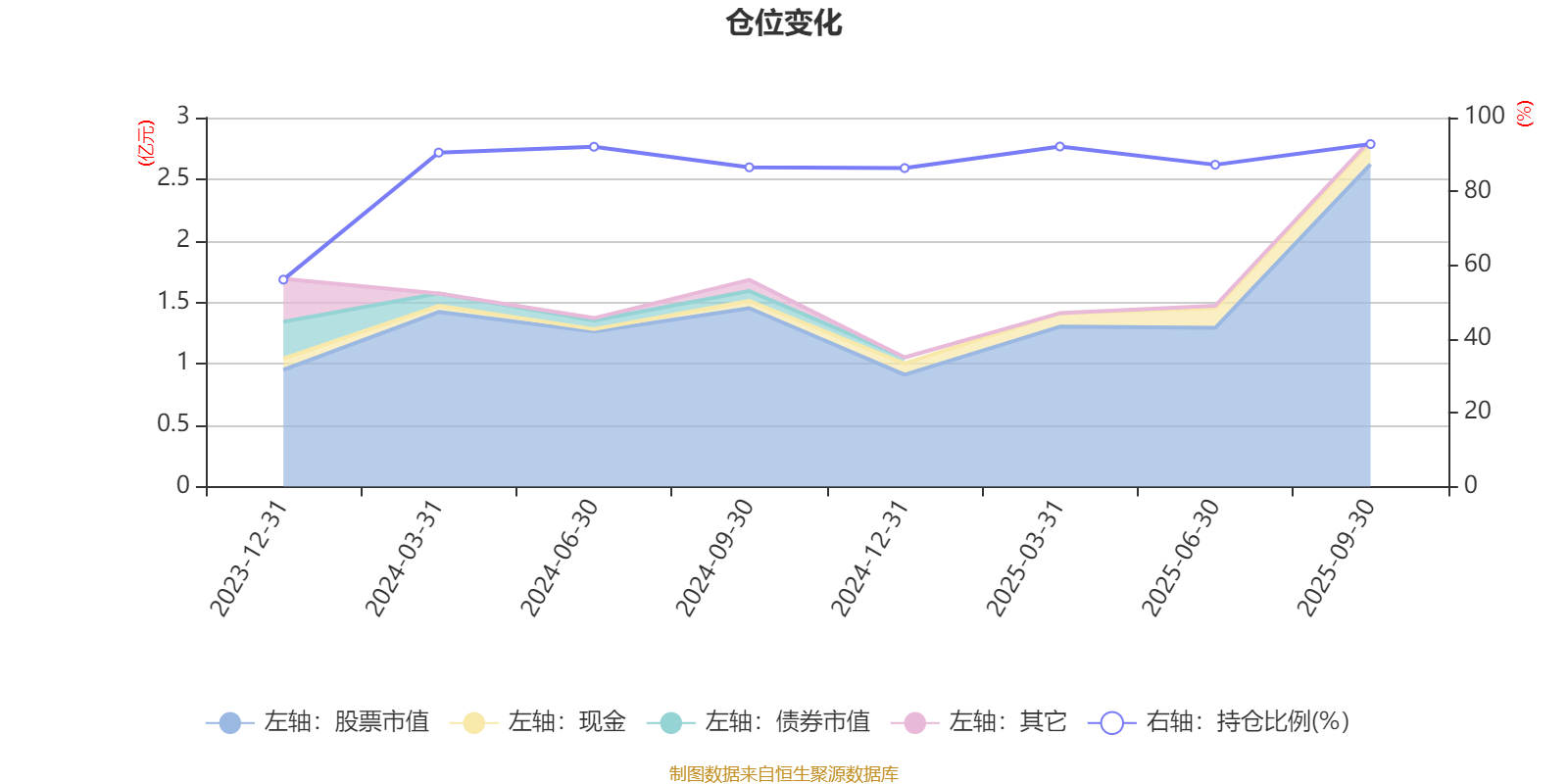 据定期报告数据统计,成立以来平均股票仓位为85.47%,同类平均为83.73%。2025年三季度末基金达到92.82%的最高仓位,2023年末最低,为56.08%。
