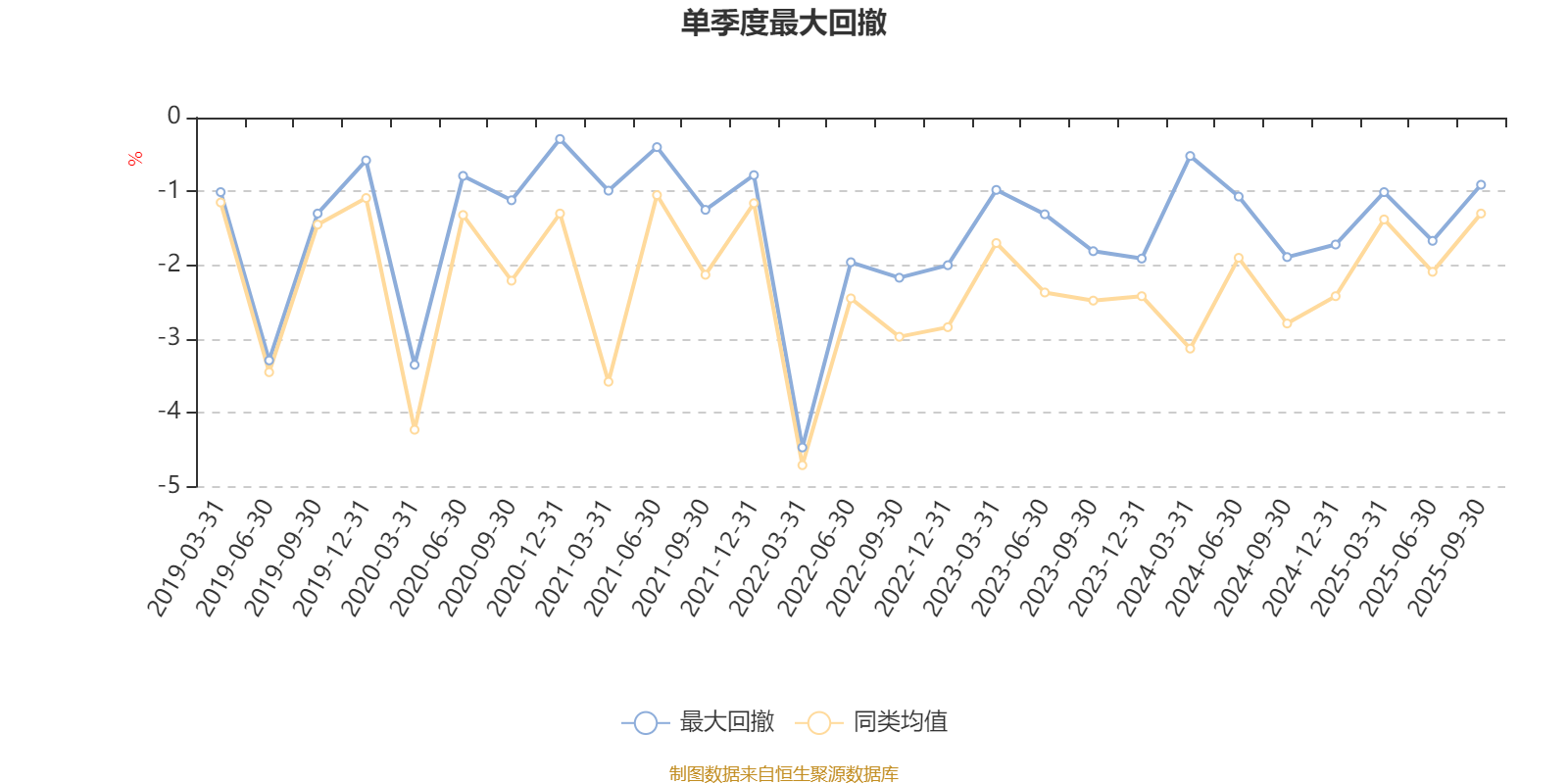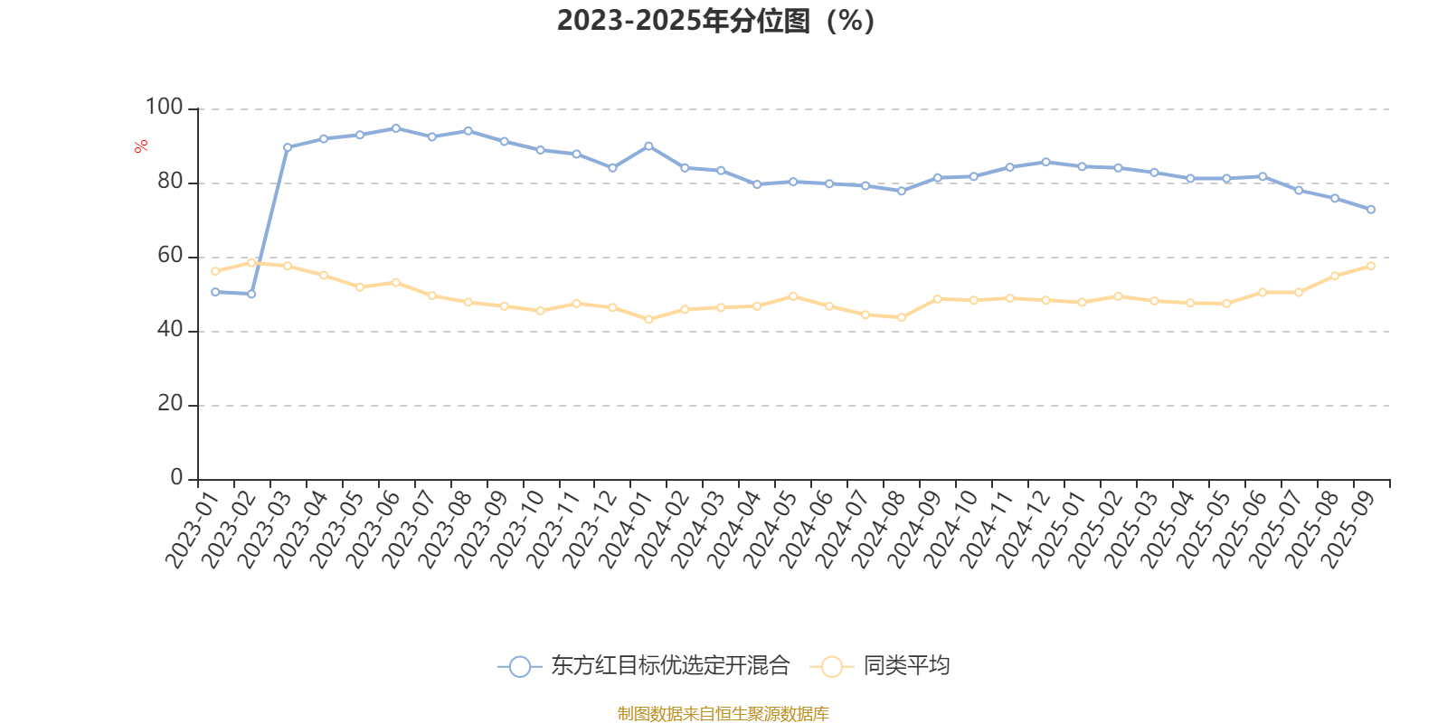 通过所选区间该基金净值增长率分位图,可以观察该基金与同类基金业绩比较情况。图为坐标原点到区间内某时点的净值增长率在同类基金中的分位数。