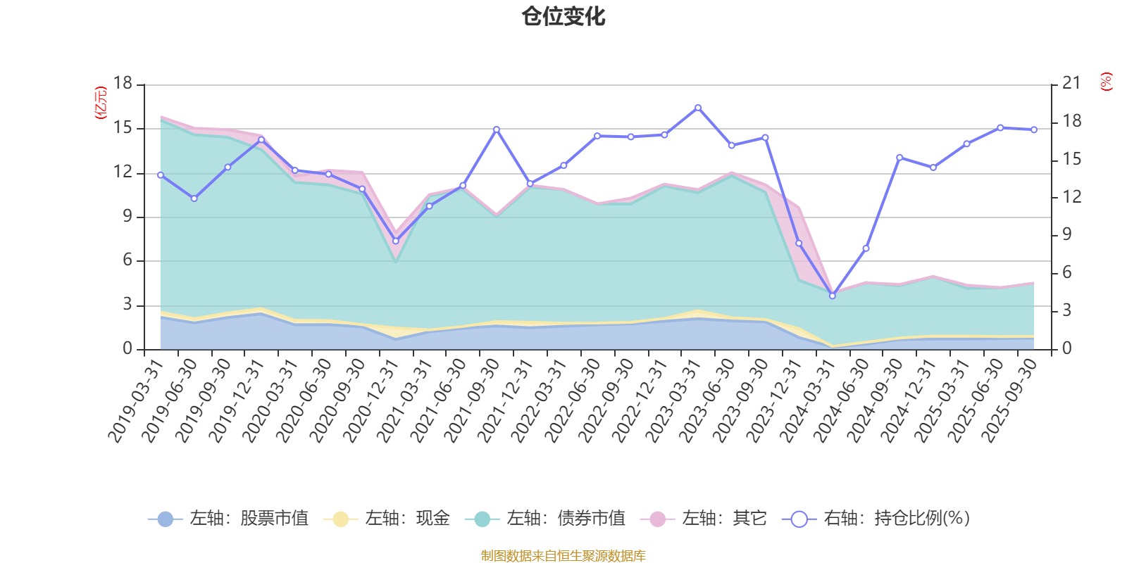 据定期报告数据统计,近三年平均股票仓位为14.23%,同类平均为19.14%。2023年一季度末基金达到19.16%的最高仓位,2024年一季度末最低,为4.24%。