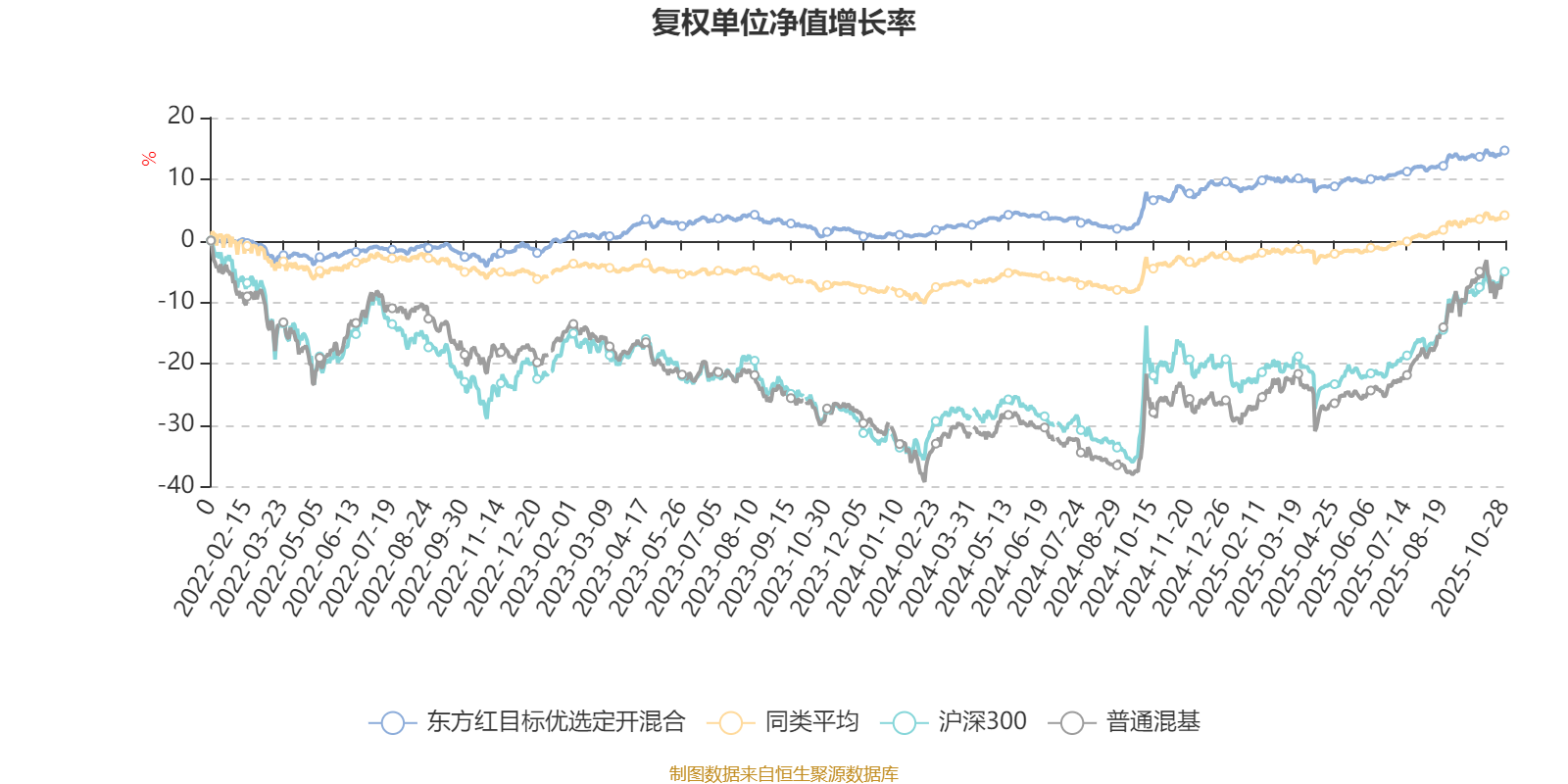 截至10月28日,东方红目标优选定开混合近三个月复权单位净值增长率为2.26%,位于同类可比基金327/629;近半年复权单位净值增长率为5.37%,位于同类可比基金320/629;近一年复权单位净值增长率为7.46%,位于同类可比基金255/623;近三年复权单位净值增长率为19.47%,位于同类可比基金98/557。