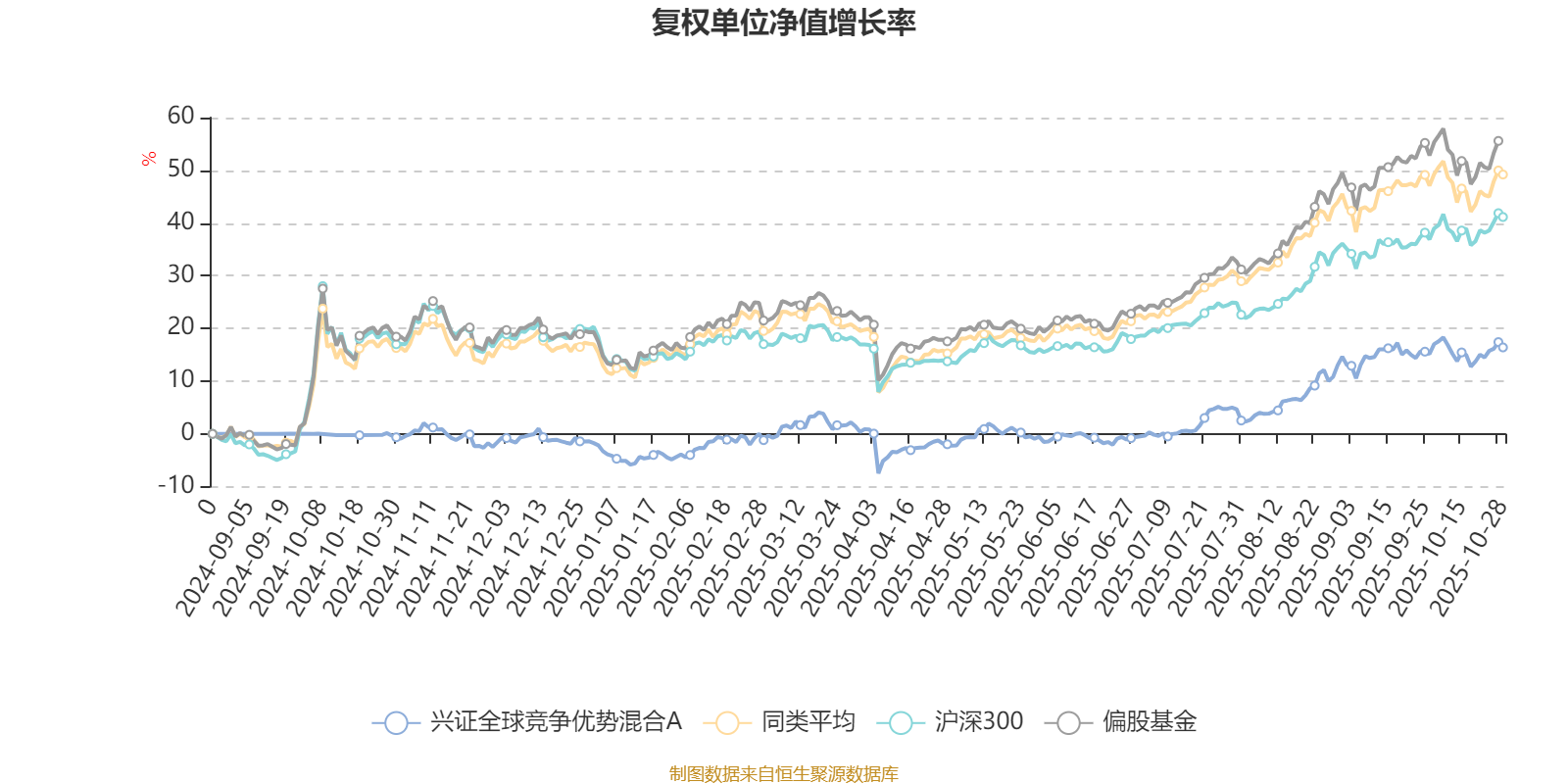 截至10月28日,兴证全球竞争优势混合A近三个月复权单位净值增长率为11.12%,位于同类可比基金400/689;近半年复权单位净值增长率为18.74%,位于同类可比基金505/688;近一年复权单位净值增长率为16.23%,位于同类可比基金473/653。