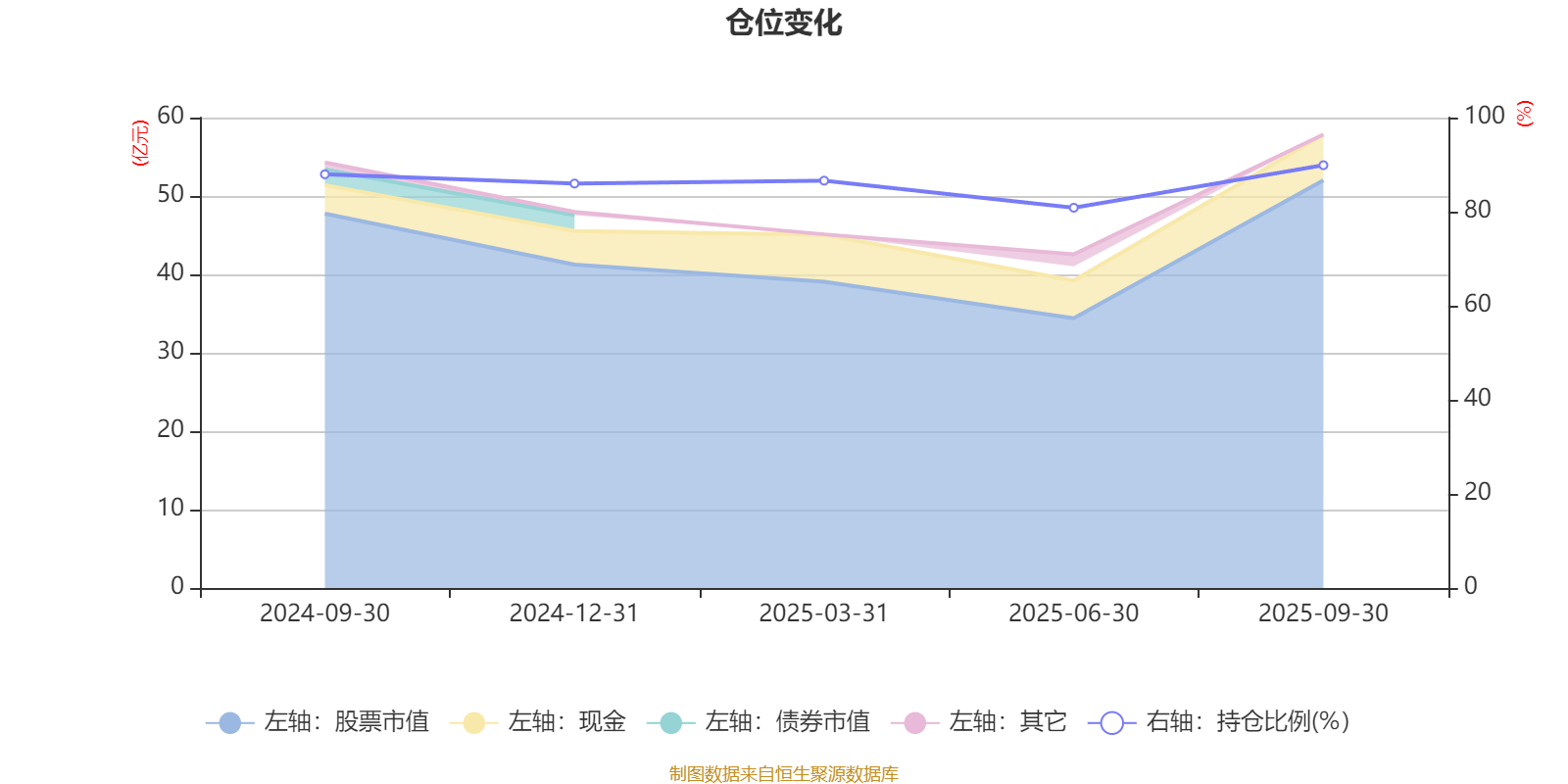 据定期报告数据统计,成立以来平均股票仓位为86.25%,同类平均为86.15%。2025年三季度末基金达到89.88%的最高仓位,2025年上半年末最低,为80.84%。