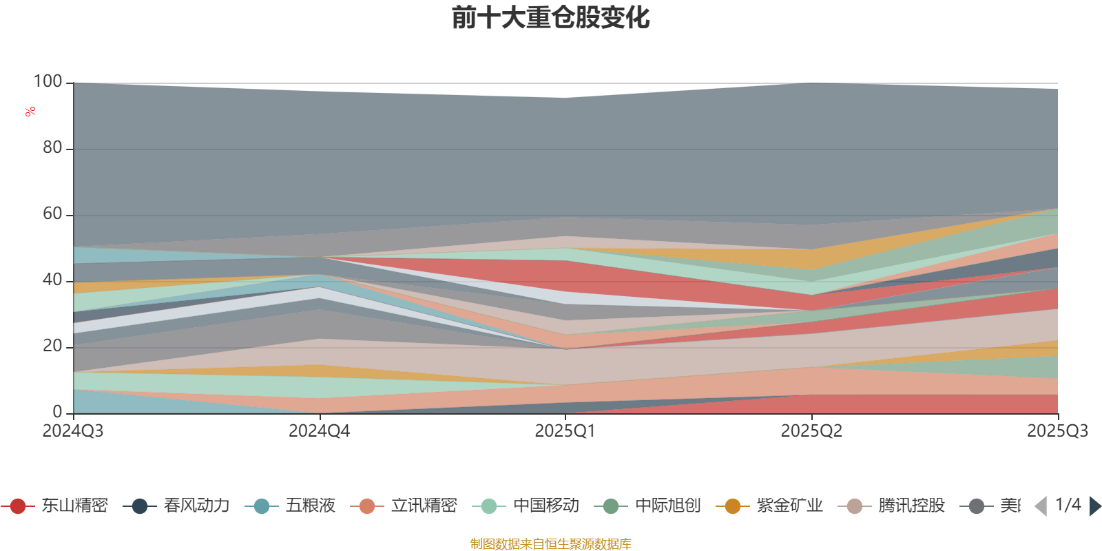 该基金持股集中度较高。截至2025年三季度末,基金十大重仓股分别是腾讯控股、新易盛、中际旭创、沪电股份、深南电路、工业富联、东山精密、立讯精密、紫金矿业、天孚通信。