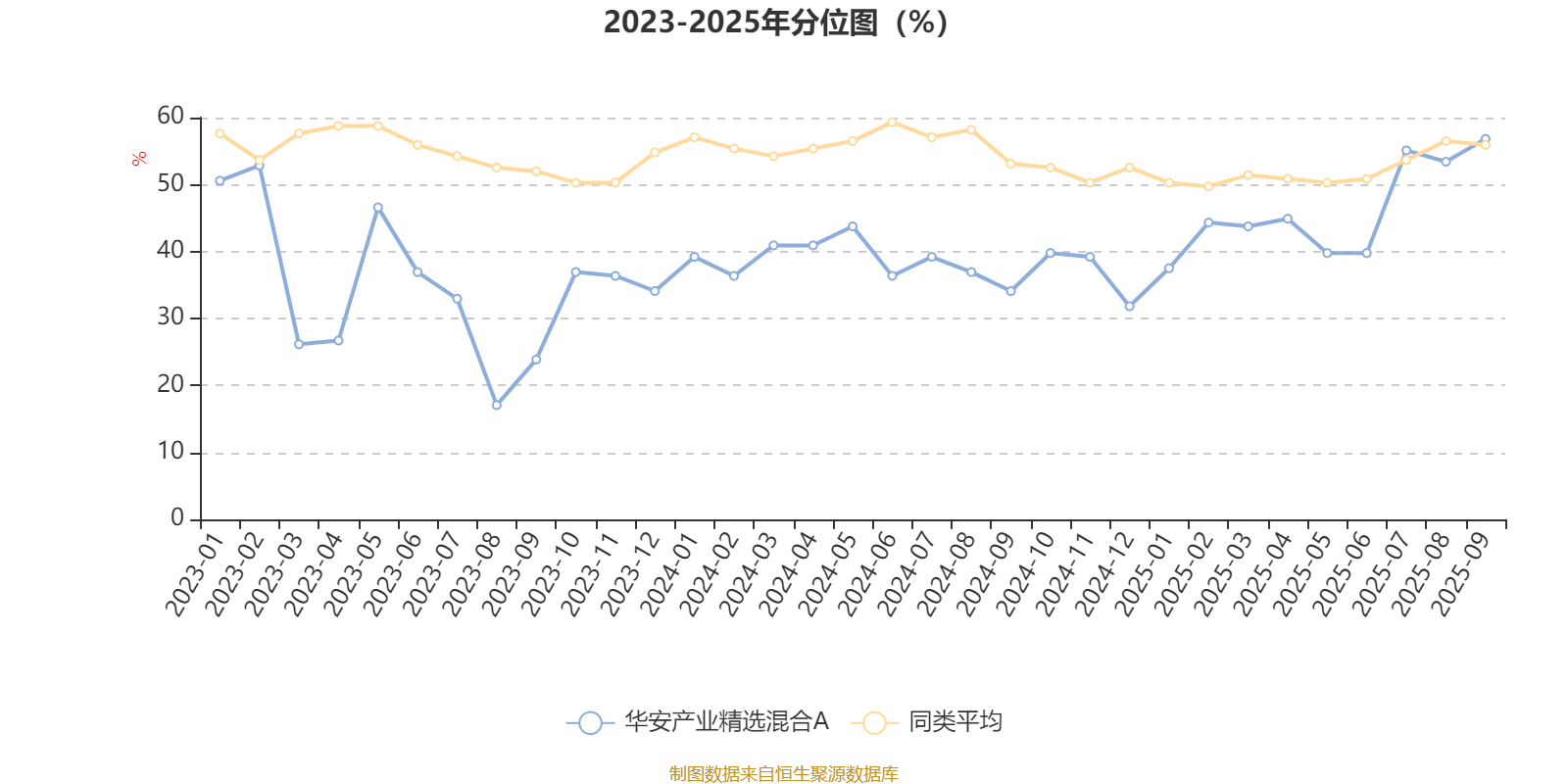 通过所选区间该基金净值增长率分位图,可以观察该基金与同类基金业绩比较情况。图为坐标原点到区间内某时点的净值增长率在同类基金中的分位数。