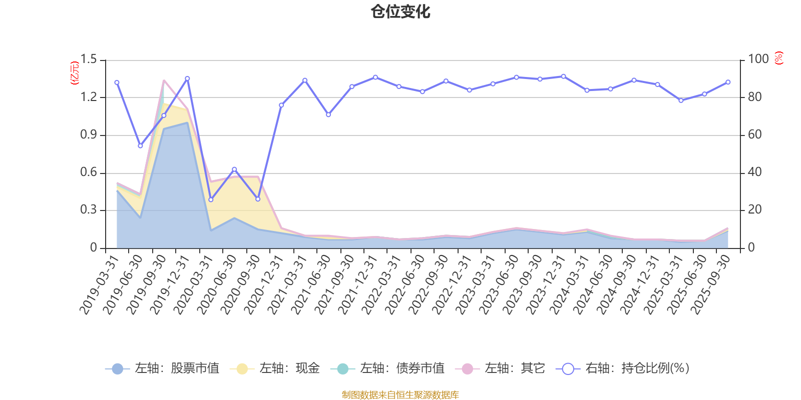 据定期报告数据统计,近三年平均股票仓位为86.4%,同类平均为83.73%。2023年末基金达到91.31%的最高仓位,2020年一季度末最低,为25.79%。