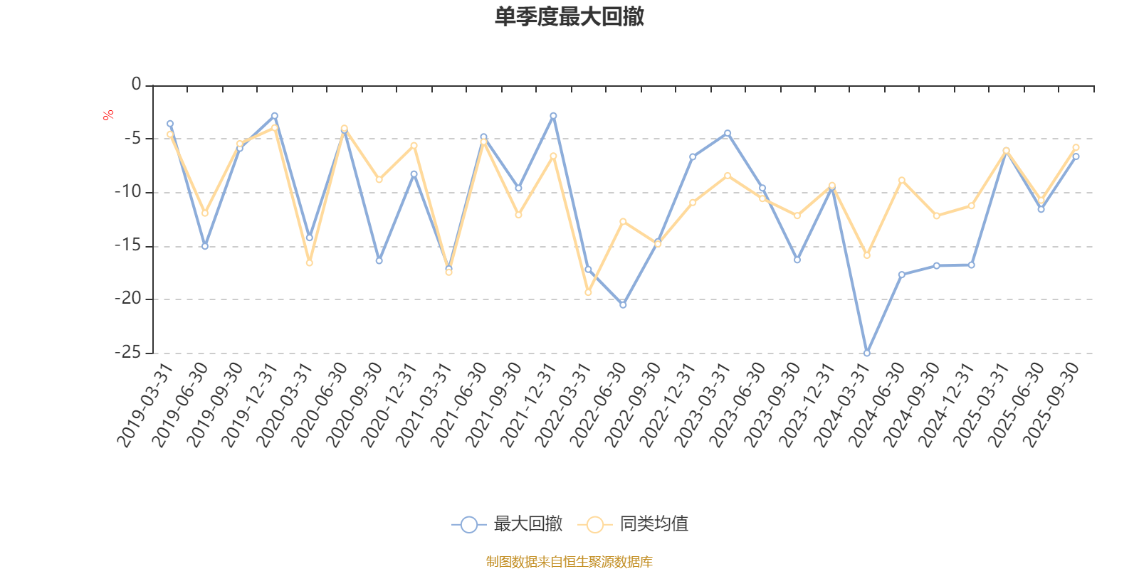 截至10月27日,基金近三年最大回撤为44.87%,同类可比基金排名292/363。单季度最大回撤出现在2024年一季度,为25%。