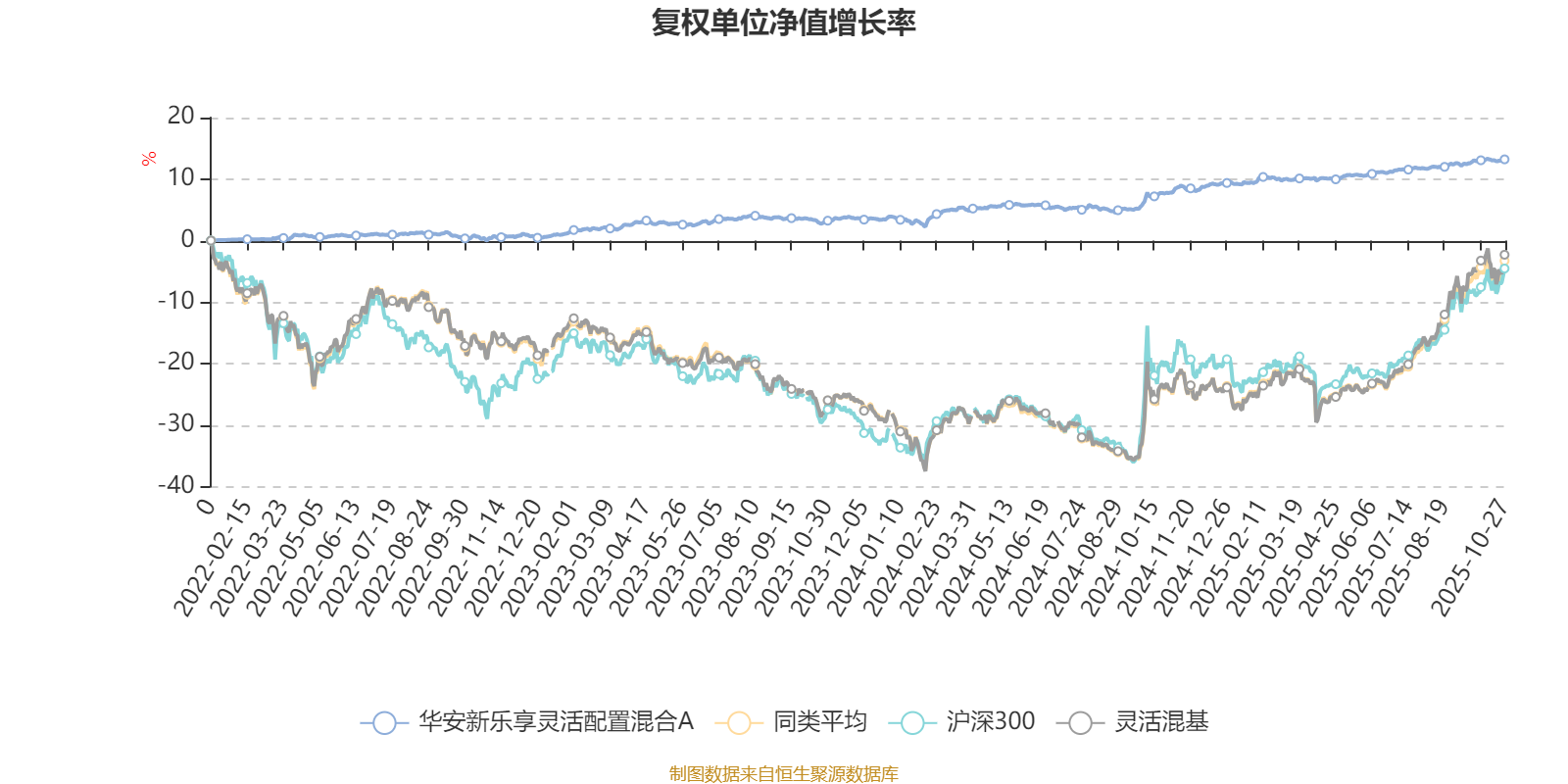 截至10月27日,华安新乐享灵活配置混合A近三个月复权单位净值增长率为1.32%,位于同类可比基金1158/1287;近半年复权单位净值增长率为2.96%,位于同类可比基金1214/1287;近一年复权单位净值增长率为5.11%,位于同类可比基金1132/1287;近三年复权单位净值增长率为12.77%,位于同类可比基金695/1286。