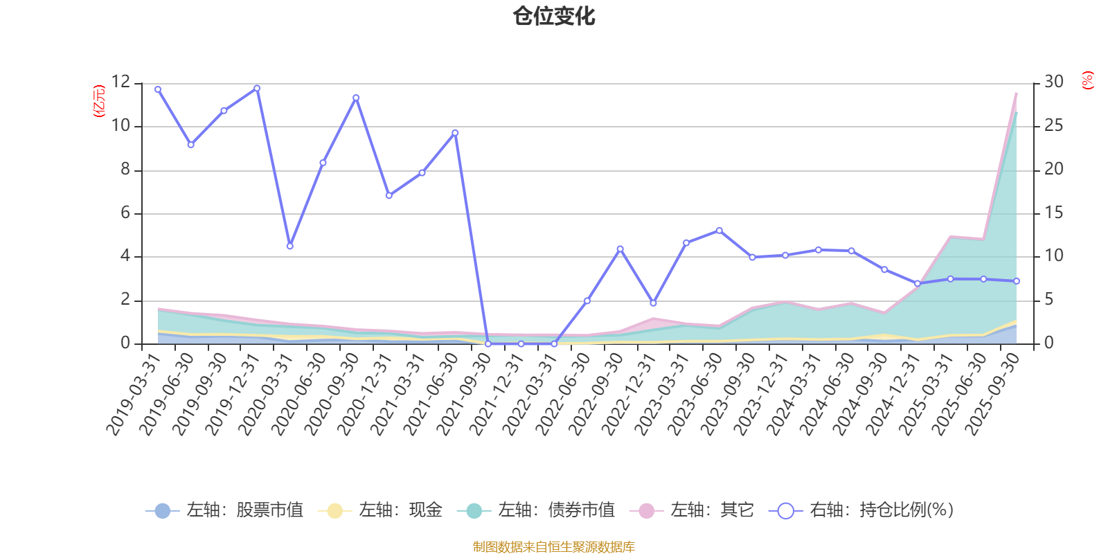 据定期报告数据统计,近三年平均股票仓位为9.05%,同类平均为72.35%。2019年末基金达到29.41%的最高仓位,2022年末最低,为4.69%。