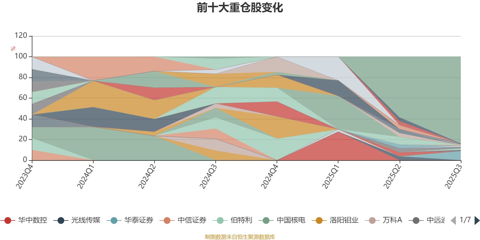 截至2025年三季度末,基金十大重仓股分别是华泰证券、宁德时代、贵州茅台、东方财富、同花顺、中国平安、紫金矿业、招商银行、美的集团、寒武纪。