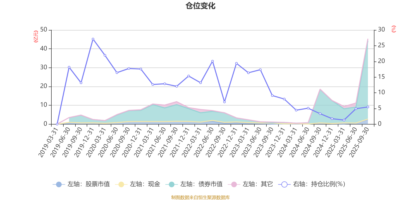 据定期报告数据统计,近三年平均股票仓位为8.04%,同类平均为72.35%。2019年末基金达到27.12%的最高仓位,2025年一季度末最低,为1.29%。