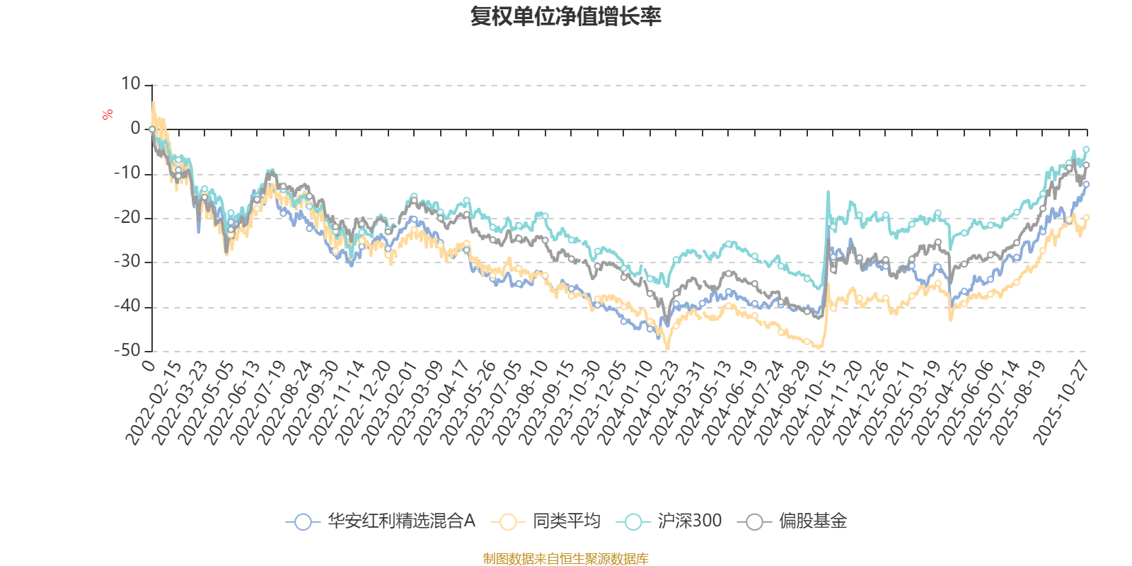 截至10月27日,华安红利精选混合A近三个月复权单位净值增长率为17.92%,位于同类可比基金253/621;近半年复权单位净值增长率为37.91%,位于同类可比基金181/619;近一年复权单位净值增长率为21.66%,位于同类可比基金403/611;近三年复权单位净值增长率为23.68%,位于同类可比基金206/518。