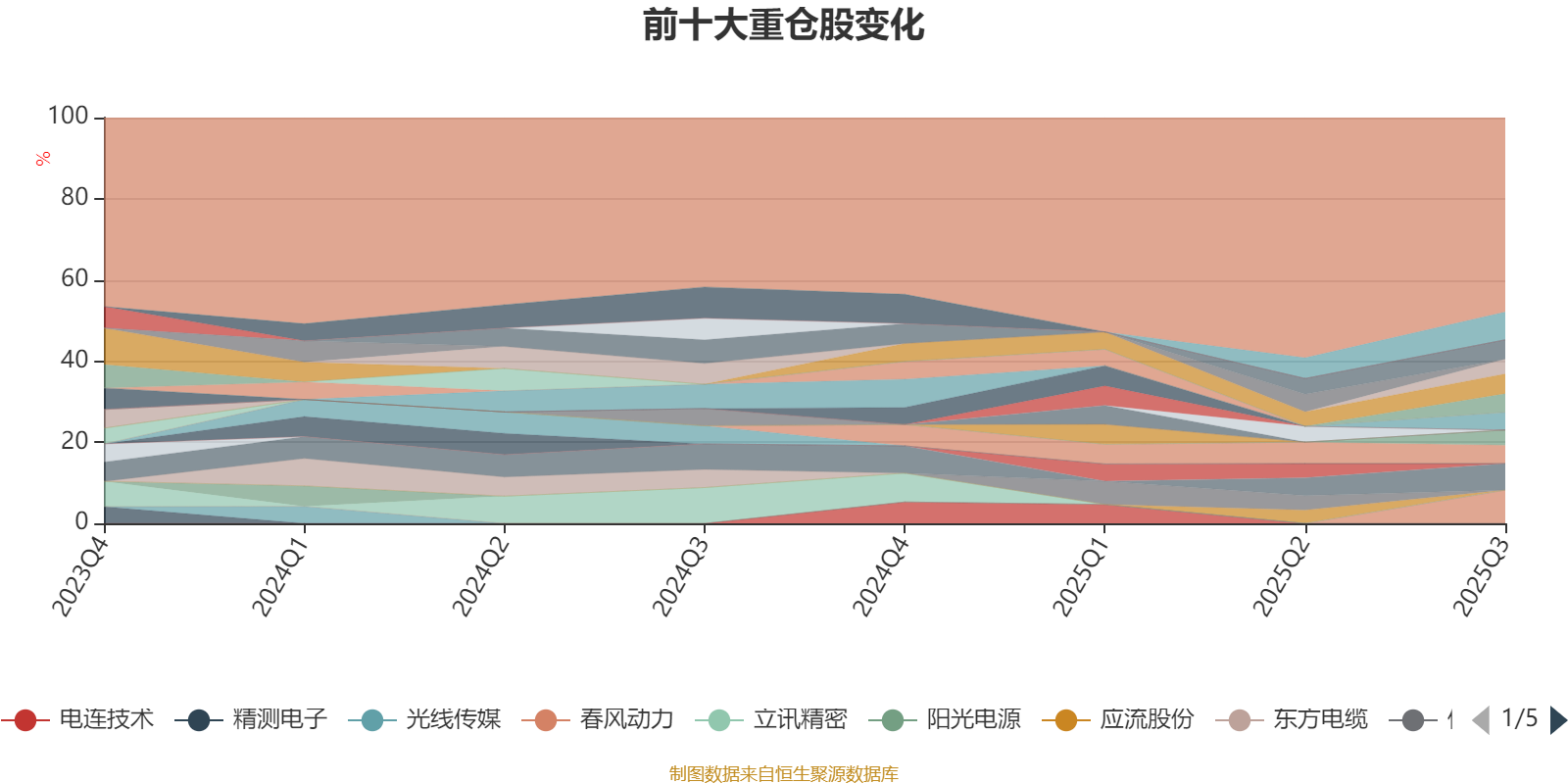 截至2025年三季度末,基金十大重仓股分别是春风动力、兆易创新、中际旭创、三花智控、新易盛、拓普集团、生益科技、沪电股份、深南电路、工业富联。
