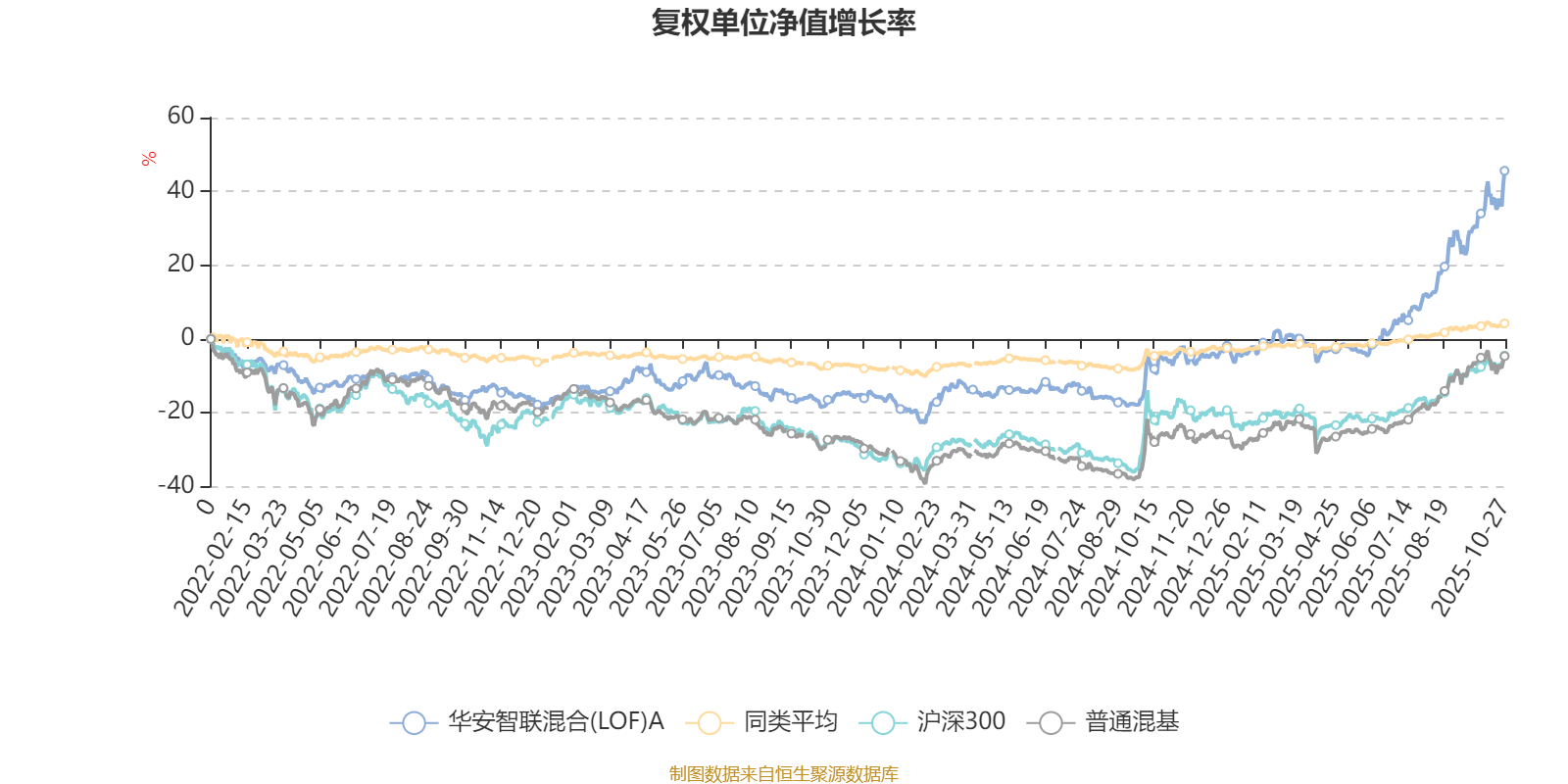 截至10月27日,华安智联混合(LOF)A近三个月复权单位净值增长率为33.28%,位于同类可比基金1/629;近半年复权单位净值增长率为49.73%,位于同类可比基金1/629;近一年复权单位净值增长率为53.19%,位于同类可比基金1/623;近三年复权单位净值增长率为68.11%,位于同类可比基金1/557。