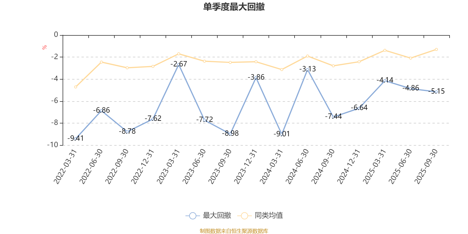 截至10月27日,基金近三年最大回撤为17.64%,同类可比基金排名509/535。单季度最大回撤出现在2022年一季度,为9.41%。