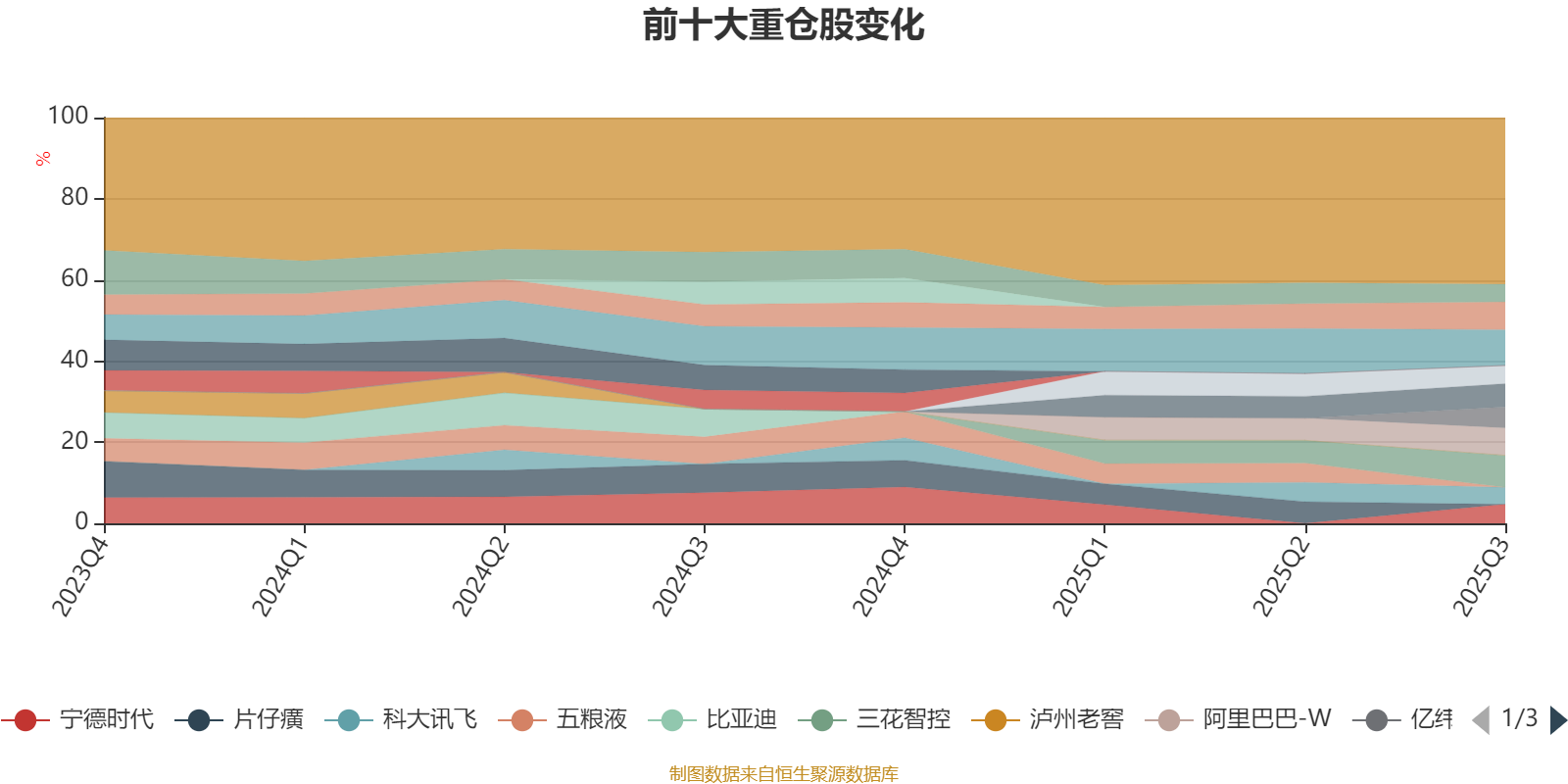 该基金持股集中度较高。截至2025年三季度末,基金十大重仓股分别是腾讯控股、三花智控、北方稀土、阿里巴巴-W、汇川技术、亿纬锂能、宁德时代、恒立液压、贵州茅台、科大讯飞。