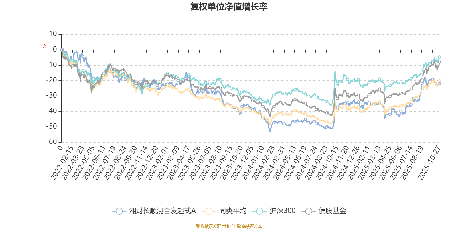 截至10月27日,湘财长顺混合发起式A近三个月复权单位净值增长率为14.94%,位于同类可比基金326/689;近半年复权单位净值增长率为34.42%,位于同类可比基金234/688;近一年复权单位净值增长率为19.66%,位于同类可比基金441/653;近三年复权单位净值增长率为-0.71%,位于同类可比基金258/364。