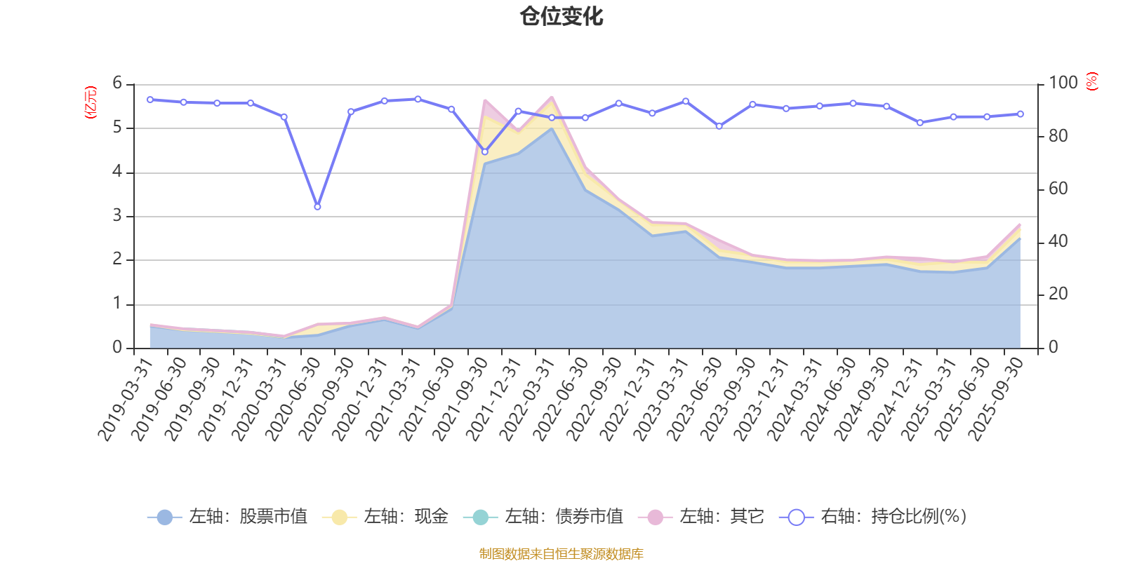 据定期报告数据统计,近三年平均股票仓位为89.6%,同类平均为72.35%。2021年一季度末基金达到94.34%的最高仓位,2020年上半年末最低,为53.56%。