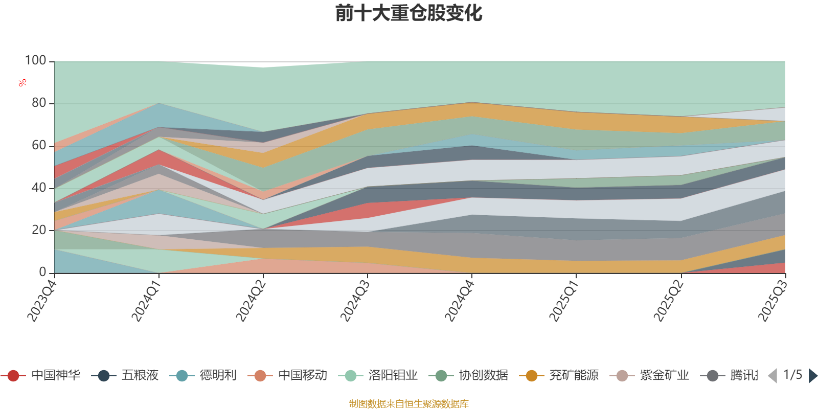 该基金持股集中度较高,近2年前十大重仓股集中度长期超过60%。截至2025年三季度末,基金十大重仓股分别是美的集团、腾讯控股、贵州茅台、长江电力、中国海洋石油、兖矿能源、川投能源、五粮液、陕西煤业、中国神华。