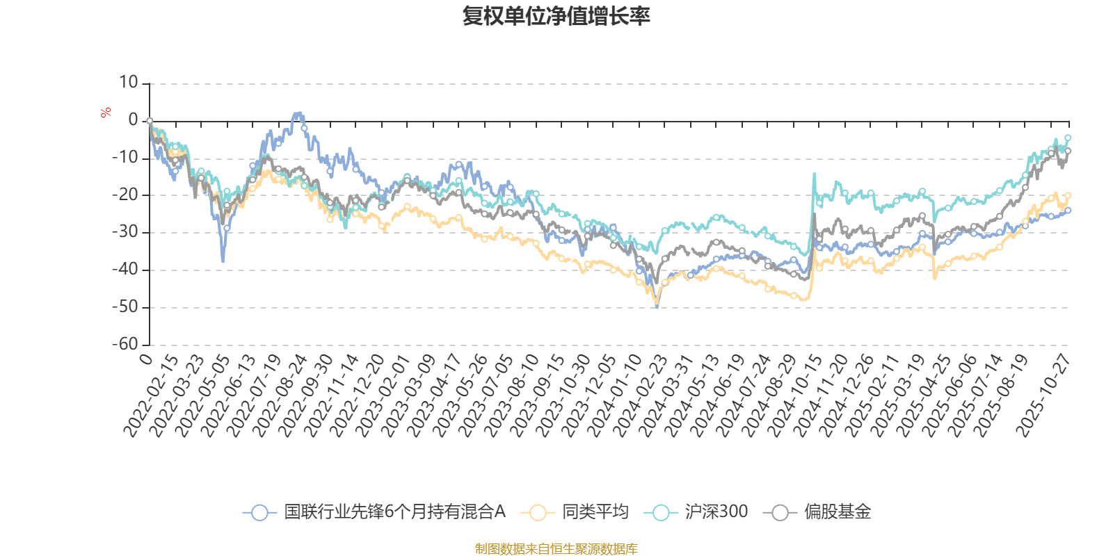 截至10月27日,国联行业先锋6个月持有混合A近三个月复权单位净值增长率为5.64%,位于同类可比基金559/689;近半年复权单位净值增长率为12.43%,位于同类可比基金606/688;近一年复权单位净值增长率为14.70%,位于同类可比基金513/653;近三年复权单位净值增长率为-14.26%,位于同类可比基金317/364。