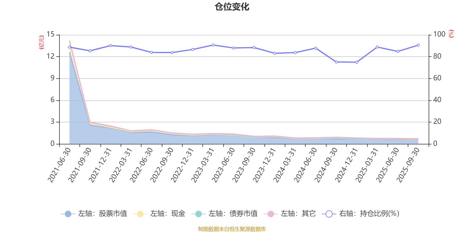 据定期报告数据统计,近三年平均股票仓位为85.19%,同类平均为83.73%。2023年一季度末基金达到90.62%的最高仓位,2024年末最低,为74.92%。