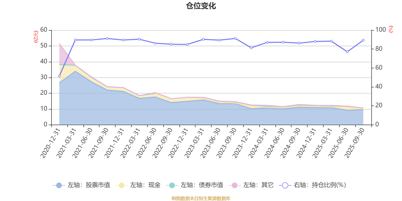 据定期报告数据统计,近三年平均股票仓位为86.73%,同类平均为87.29%。2023年三季度末基金达到91.21%的最高仓位,2020年末最低,为51.47%。
