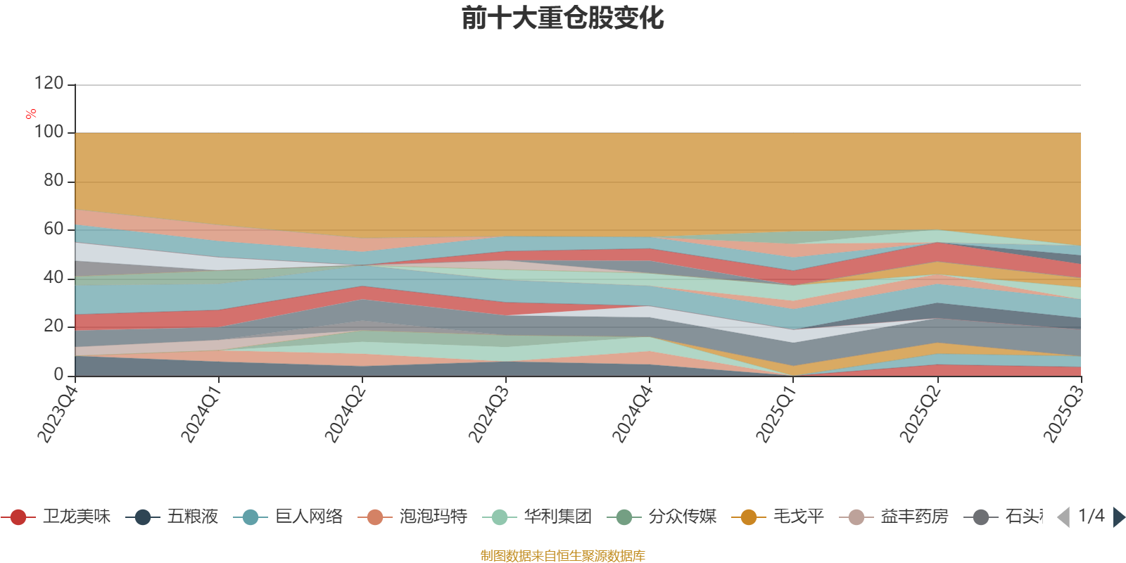 该基金持股集中度较高。截至2025年三季度末,基金十大重仓股分别是腾讯控股、贵州茅台、华润万象生活、小商品城、海大集团、巨人网络、山西汾酒、招商银行、卫龙美味、阿里巴巴-W。