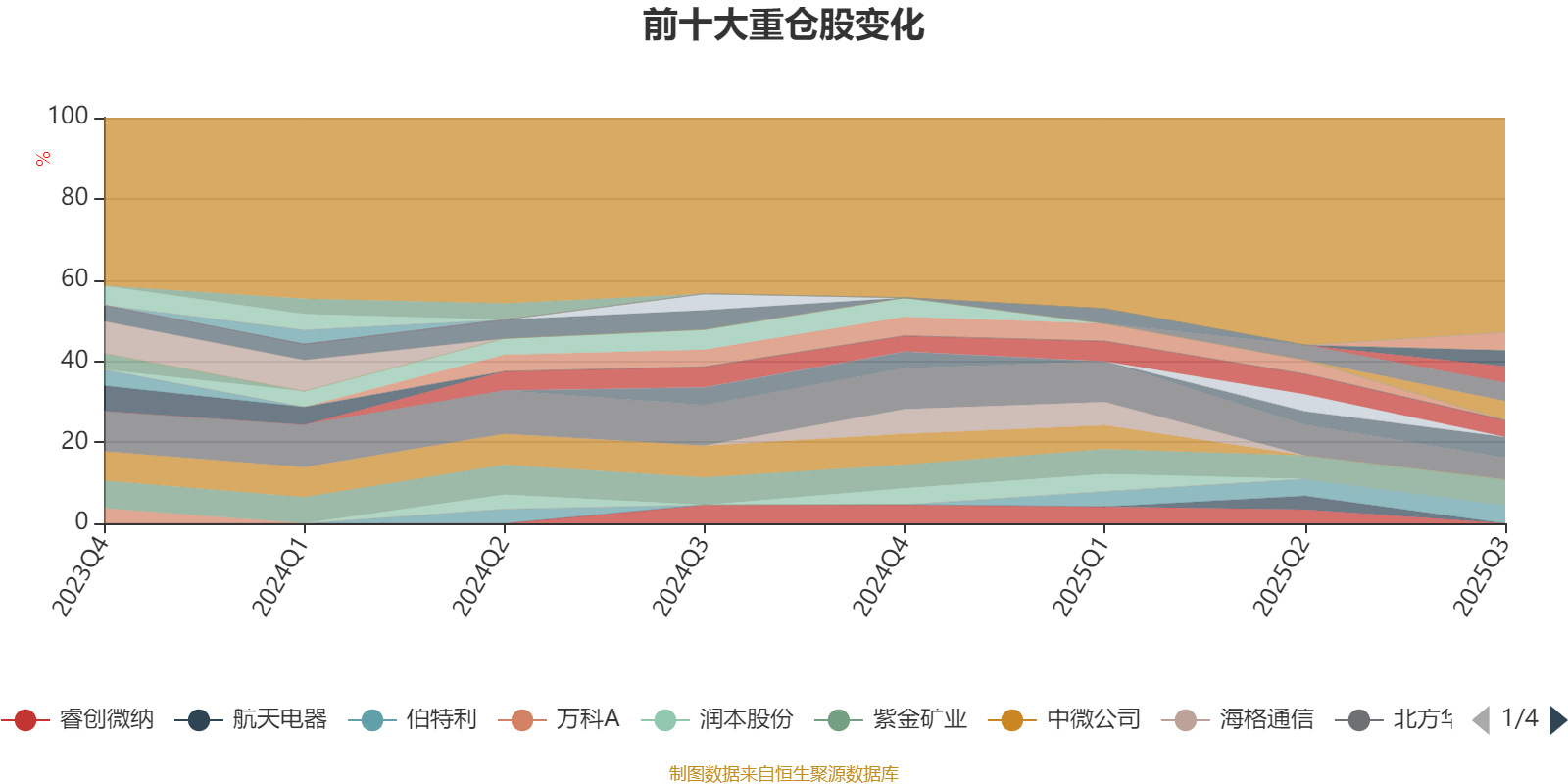 截至2025年三季度末,基金十大重仓股分别是紫金矿业、北方华创、宁德时代、澜起科技、伯特利、航宇科技、华友钴业、铂力特、能科科技、昊华科技。
