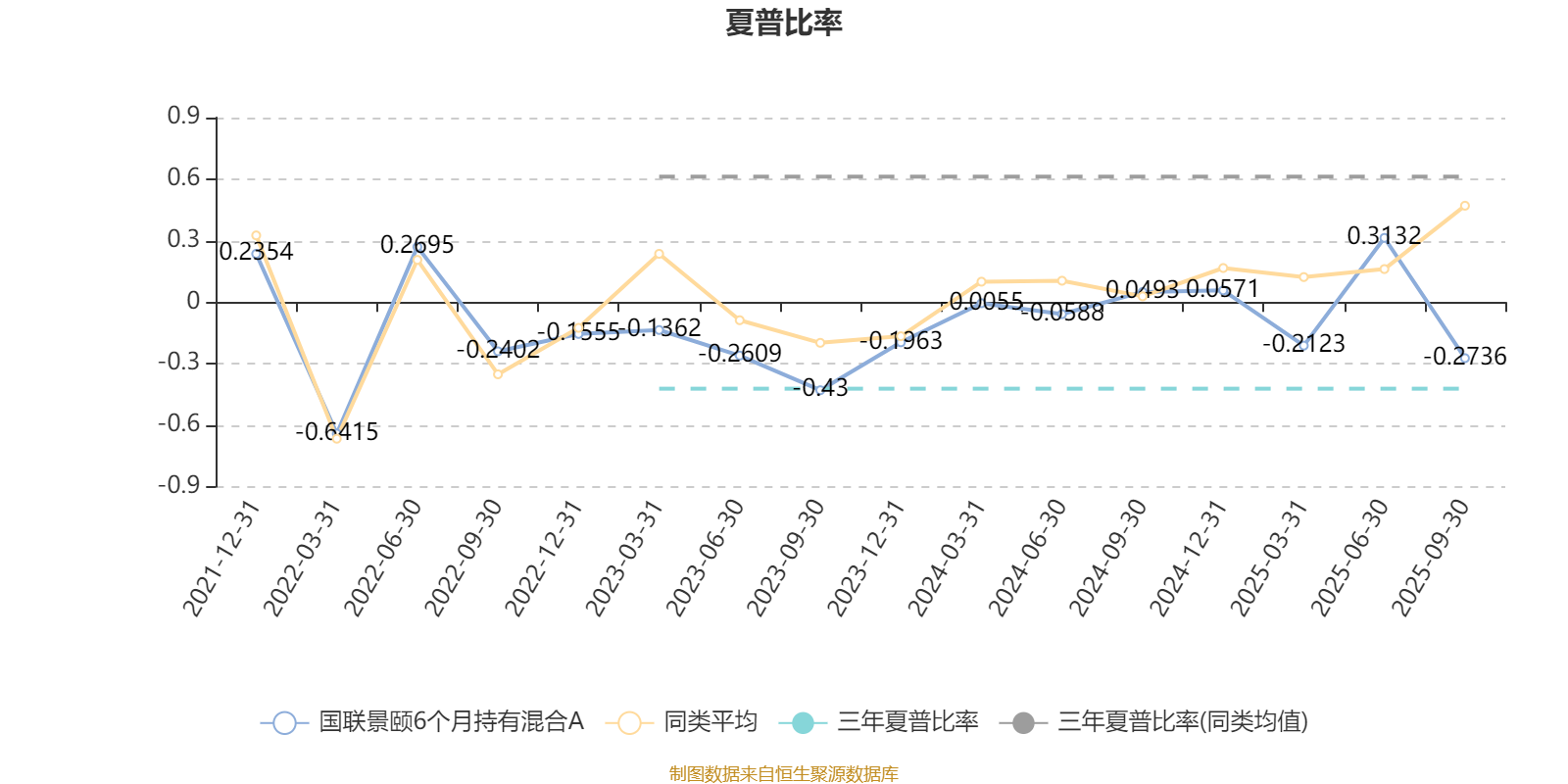 截至9月30日,基金近三年夏普比率为-0.4226,位于同类可比基金544/553。