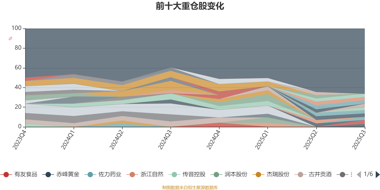 截至2025年三季度末,基金十大重仓股分别是北方华创、杭州银行、新华保险、德业股份、福能股份、嘉益股份、重庆百货、格力电器、中国建筑、赤峰黄金。