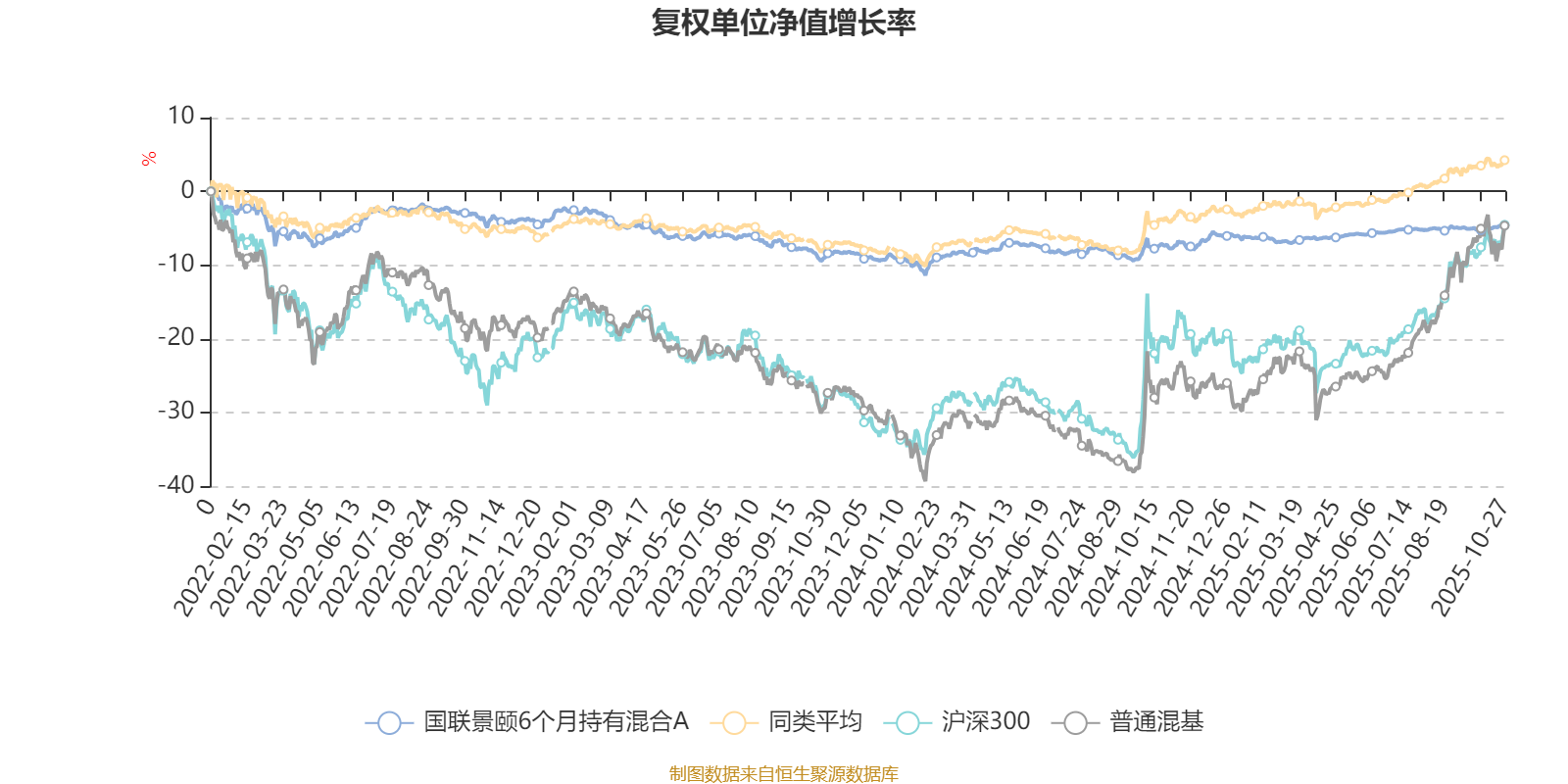 截至10月27日,国联景颐6个月持有混合A近三个月复权单位净值增长率为0.68%,位于同类可比基金549/629;近半年复权单位净值增长率为1.77%,位于同类可比基金582/629;近一年复权单位净值增长率为2.94%,位于同类可比基金573/623;近三年复权单位净值增长率为-0.59%,位于同类可比基金528/557。