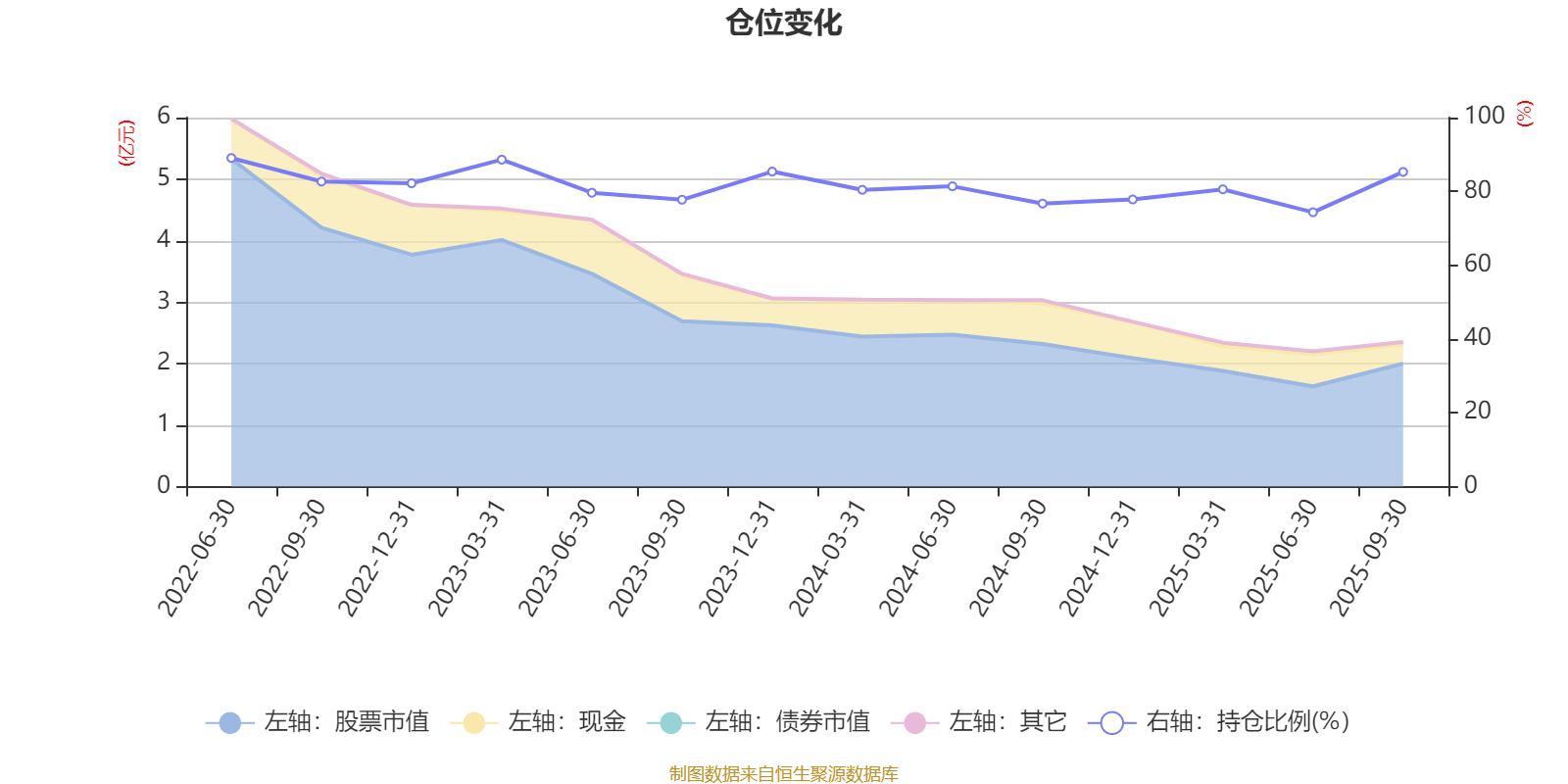 据定期报告数据统计,近三年平均股票仓位为80.84%,同类平均为85.66%。2022年上半年末基金达到89.04%的最高仓位,2025年上半年末最低,为74.35%。