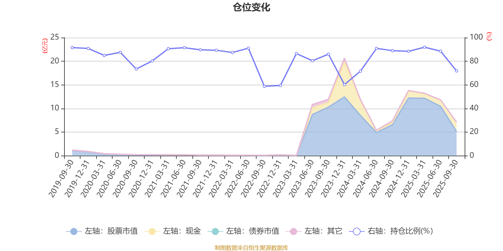 据定期报告数据统计,近三年平均股票仓位为80.43%,同类平均为86.77%。2025年一季度末基金达到91.9%的最高仓位,2022年三季度末最低,为58.81%。