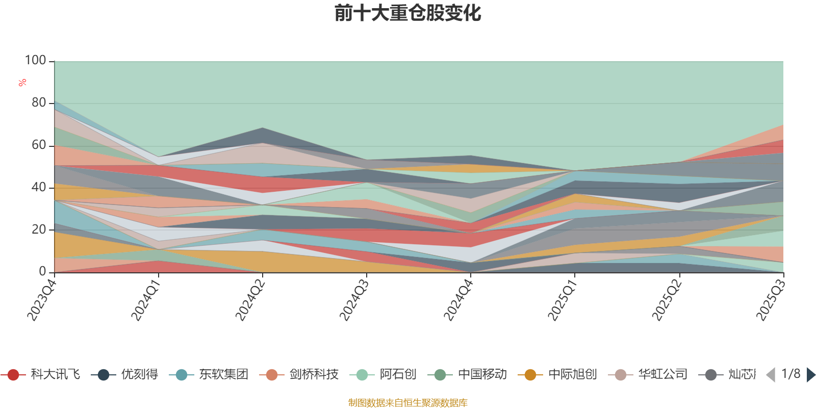 截至2025年三季度末,基金十大重仓股分别是长川科技、中芯国际、佰维存储、北方华创、中微公司、新莱应材、兆易创新、北京君正、江波龙、阿石创。
