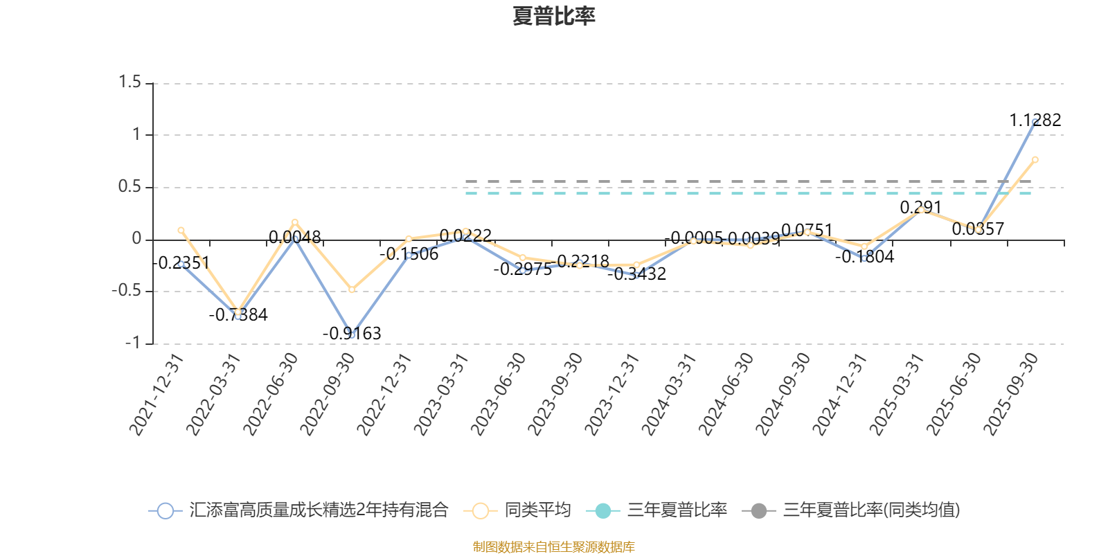 截至9月30日,基金近三年夏普比率为0.4434,位于同类可比基金121/177。
