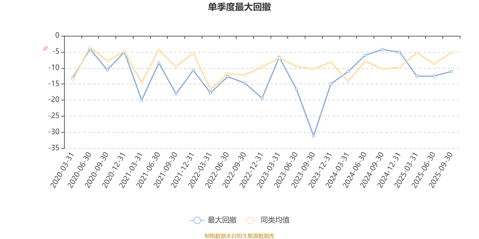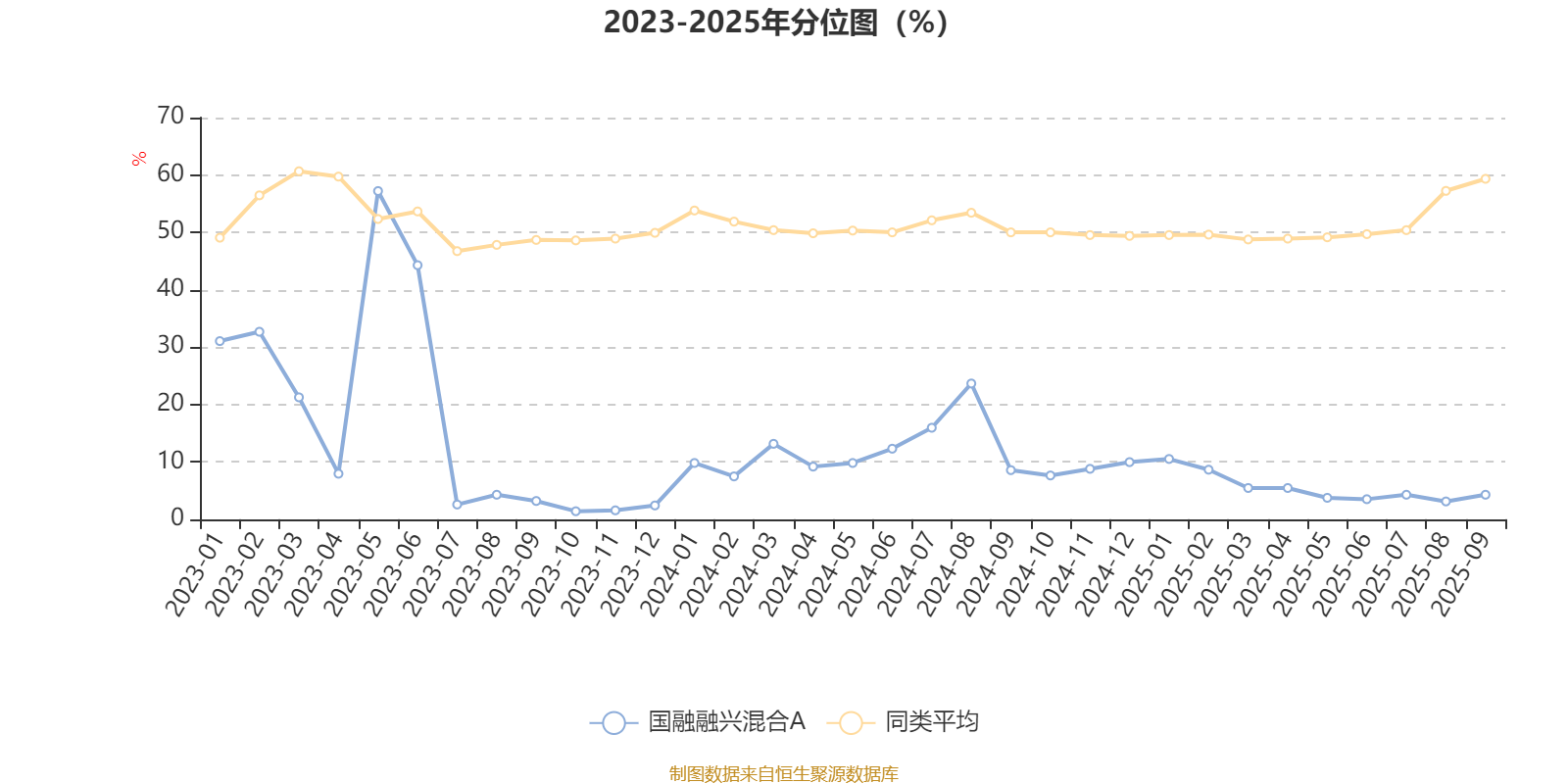 通过所选区间该基金净值增长率分位图,可以观察该基金与同类基金业绩比较情况。图为坐标原点到区间内某时点的净值增长率在同类基金中的分位数。