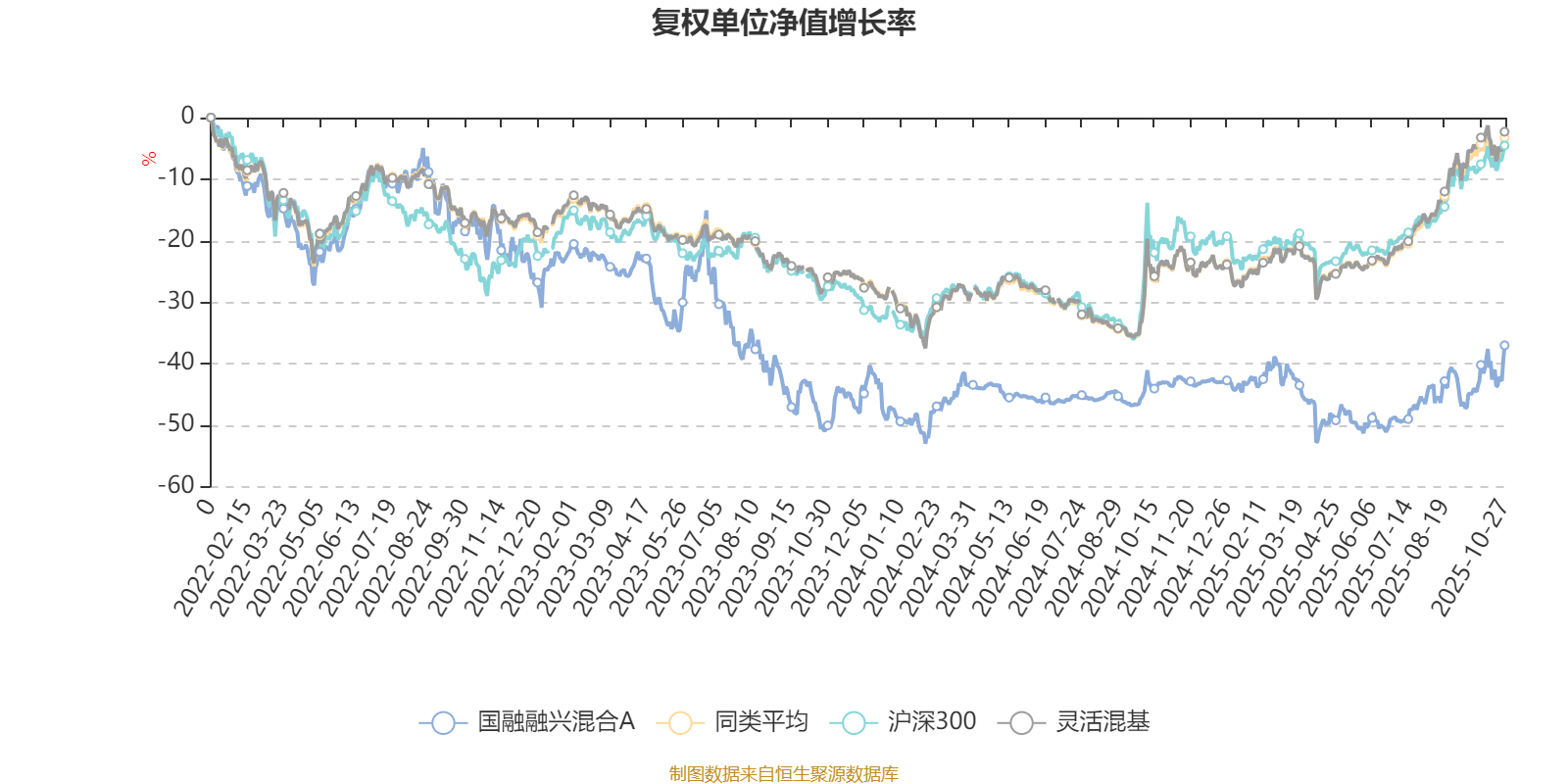 截至10月27日,国融融兴混合A近三个月复权单位净值增长率为15.28%,位于同类可比基金521/1287;近半年复权单位净值增长率为24.02%,位于同类可比基金637/1287;近一年复权单位净值增长率为10.63%,位于同类可比基金942/1287;近三年复权单位净值增长率为-22.28%,位于同类可比基金1232/1286。