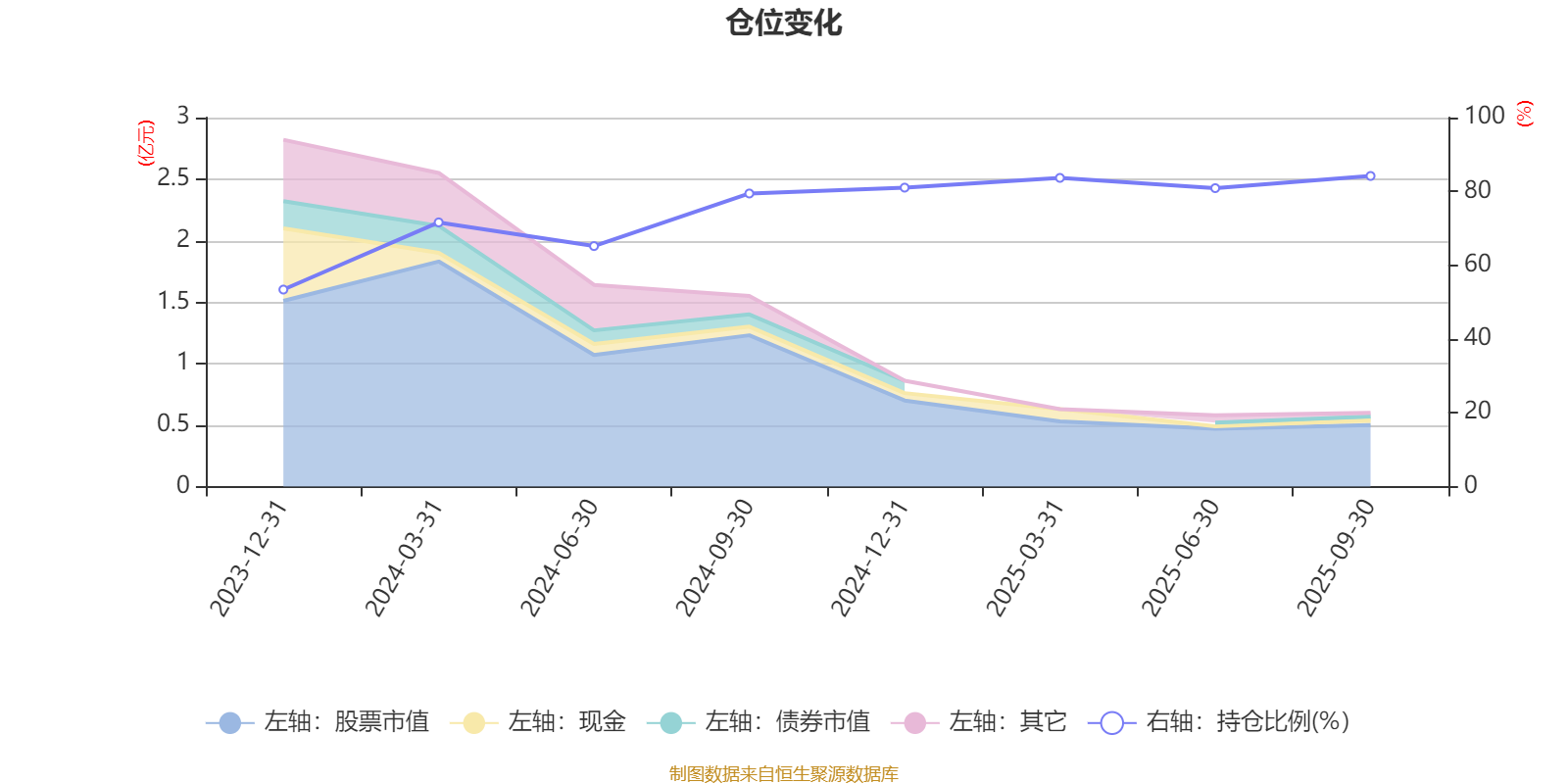 据定期报告数据统计,成立以来平均股票仓位为74.92%,同类平均为83.73%。2025年三季度末基金达到84.18%的最高仓位,2023年末最低,为53.39%。
