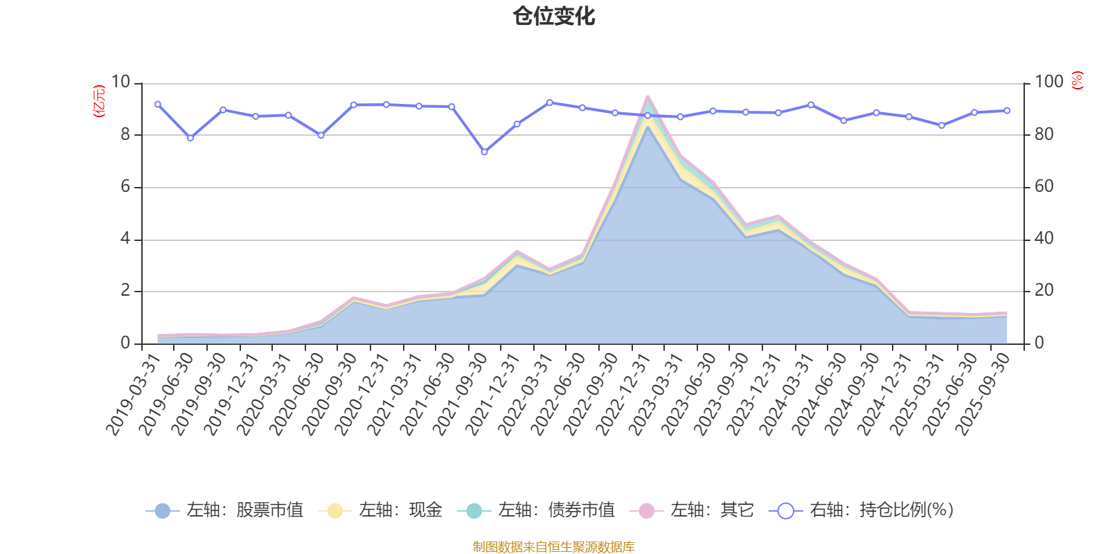 据定期报告数据统计,近三年平均股票仓位为88.04%,同类平均为72.35%。2022年一季度末基金达到92.53%的最高仓位,2021年三季度末最低,为73.6%。