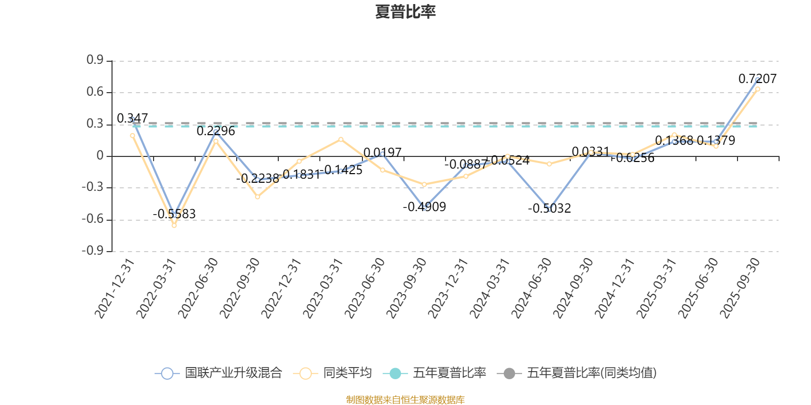 截至9月30日,基金近三年夏普比率为0.2339,位于同类可比基金1015/1285。
